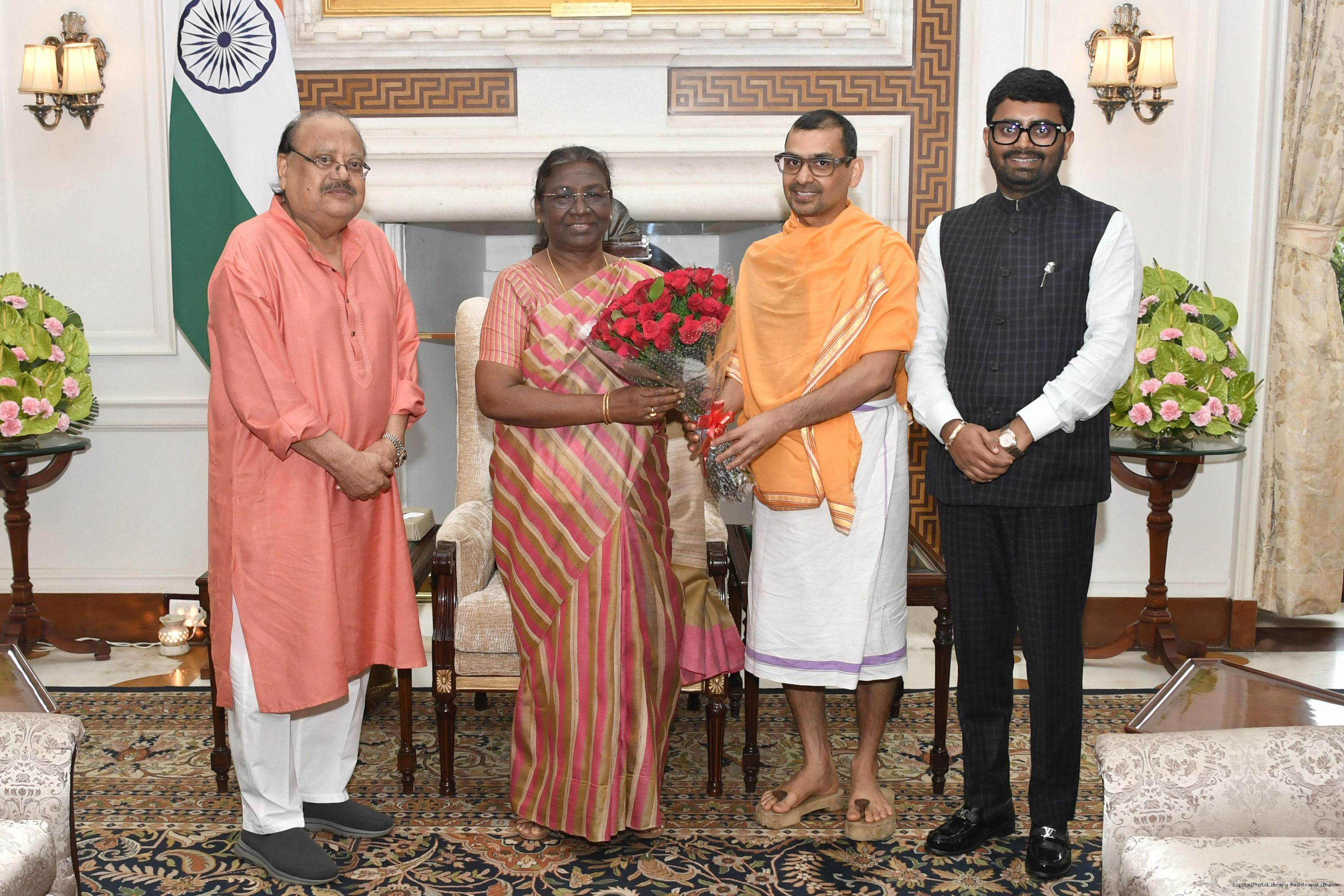 Dr. HR Nagendra, Chancellor along with others from Swami Vivekananda Yoga Anusandhana Samsthana, Bangalore meeting with the President of India, Smt. Droupadi Murmu, at Rashtrapati Bhavan on Sep 23, 2022.