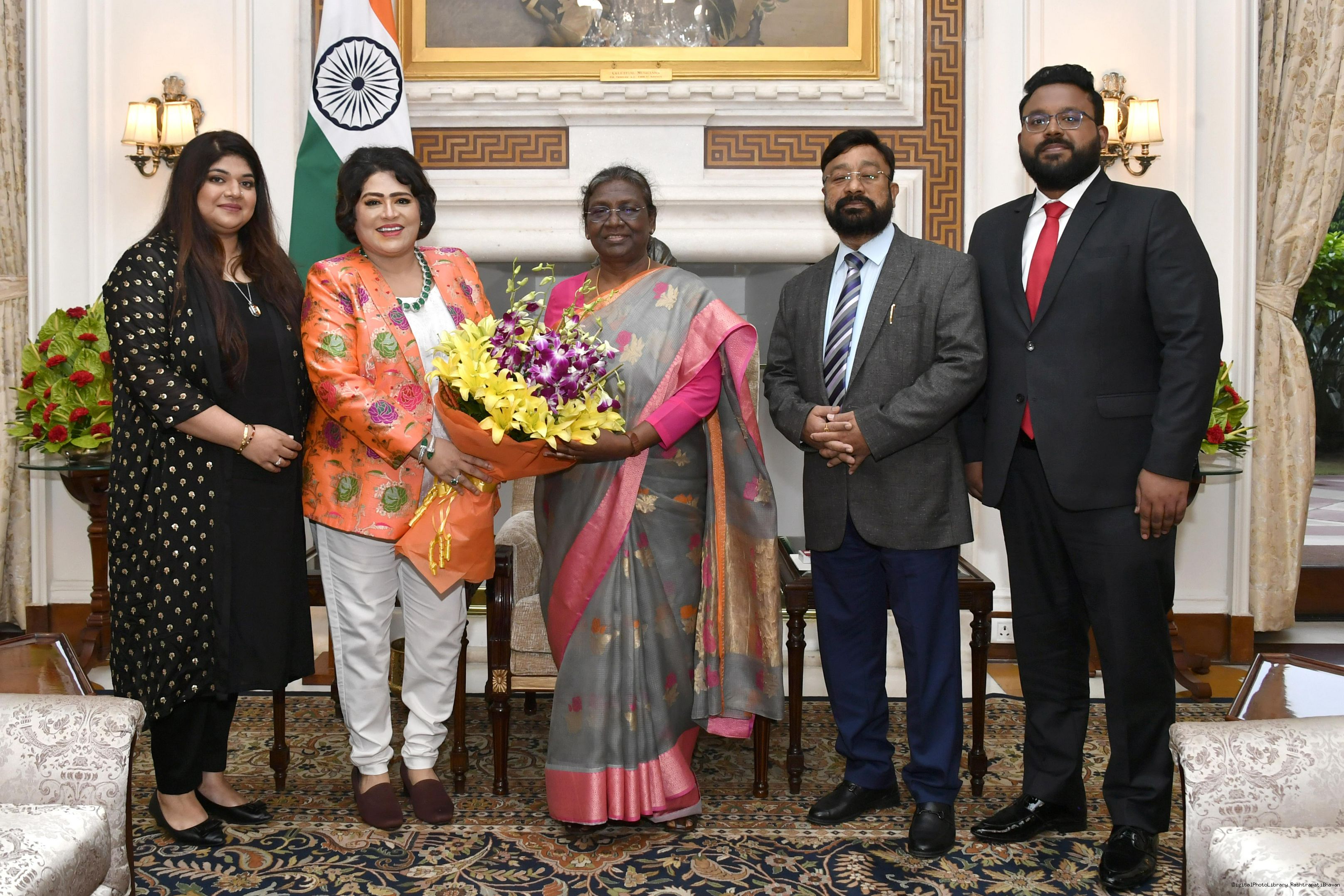 Dr. (Smt.) Bharti Kashyap along with others from Kashyap Eye Hospital, Ranchi meeting with the President of India, Smt. Droupadi Murmu, at Rashtrapati Bhavan on Oct 07, 2022.