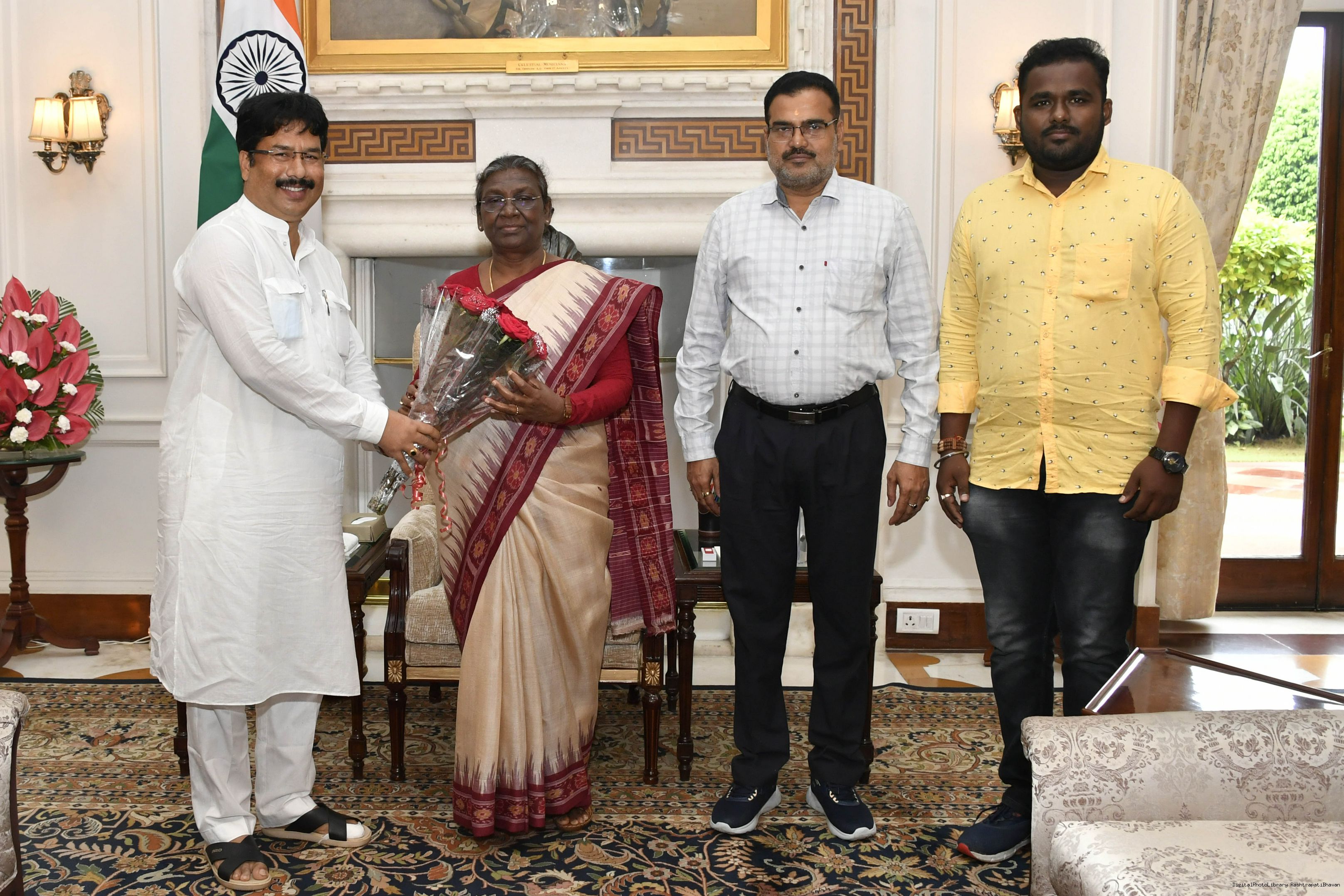 Dr. Krushna Chandra Mahapatra along with Shri Chandrakant Pradhan and Shri Bikram Mallick from Mayurbhanj meeting with the President of India, Smt. Droupadi Murmu, at Rashtrapati Bhavan on Oct 10, 2022.