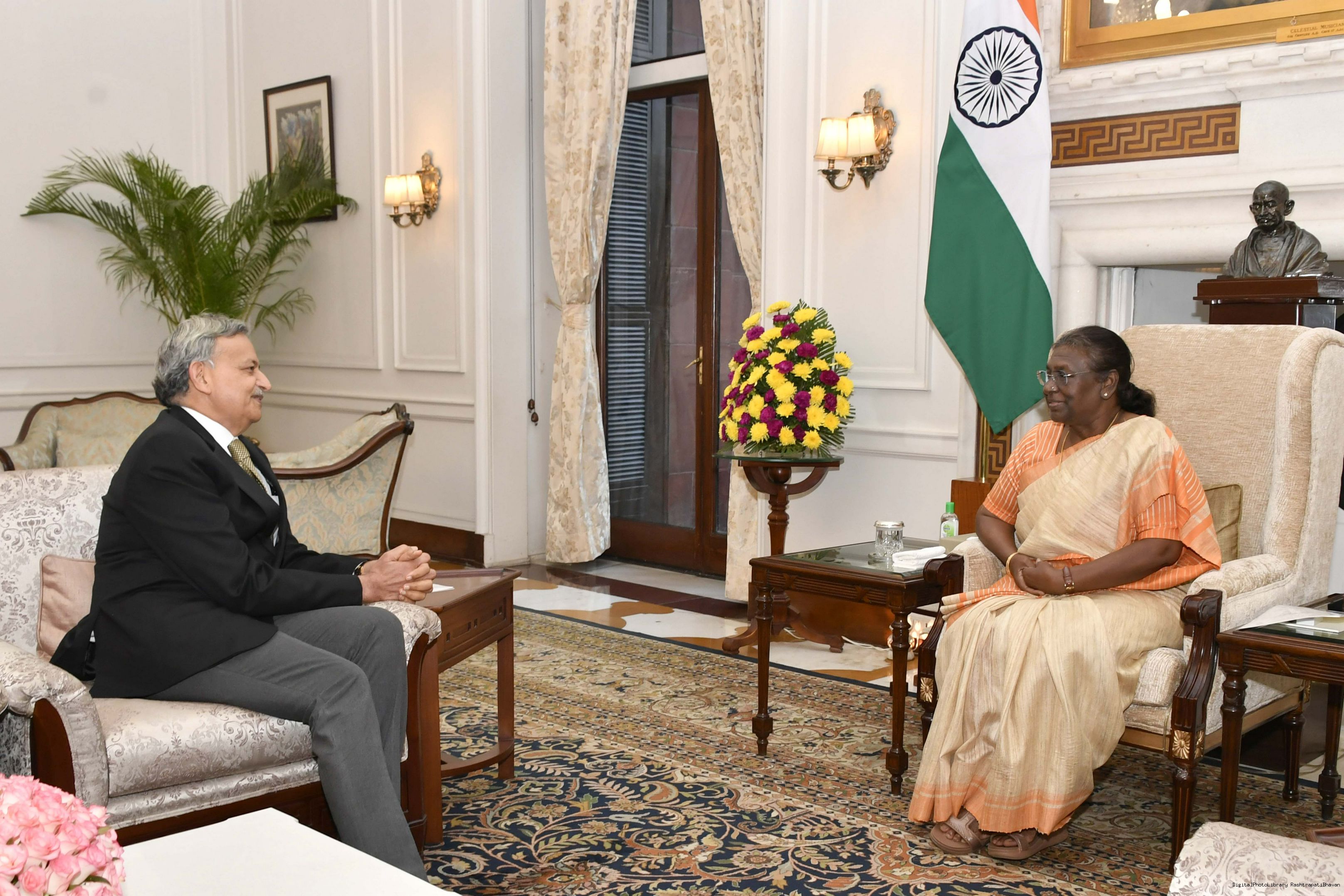 Dr. Ajay Kumar Defence Secretary meeting with the President of India, Smt. Droupadi Murmu, at Rashtrapati Bhavan on Oct 31, 2022.