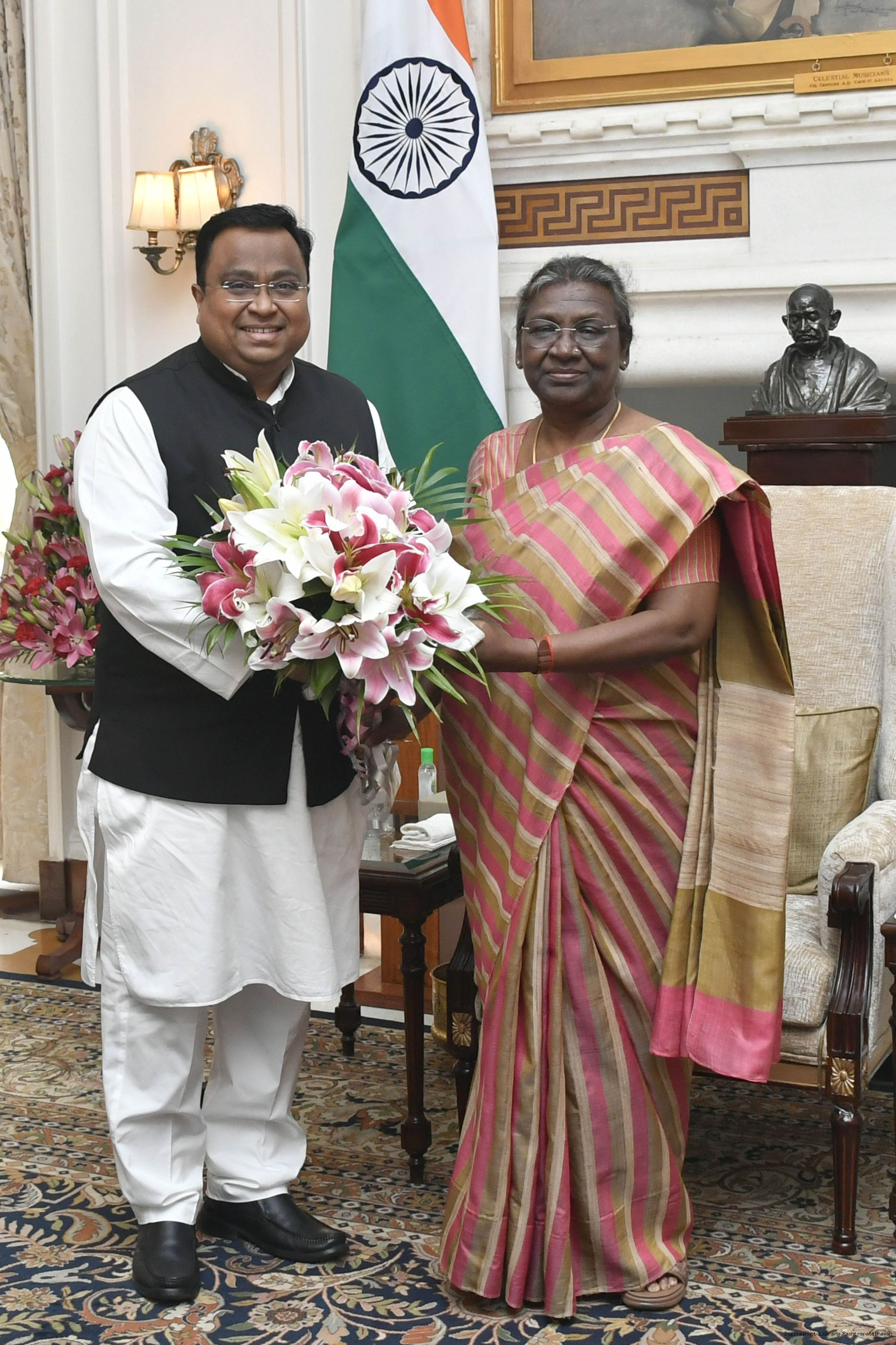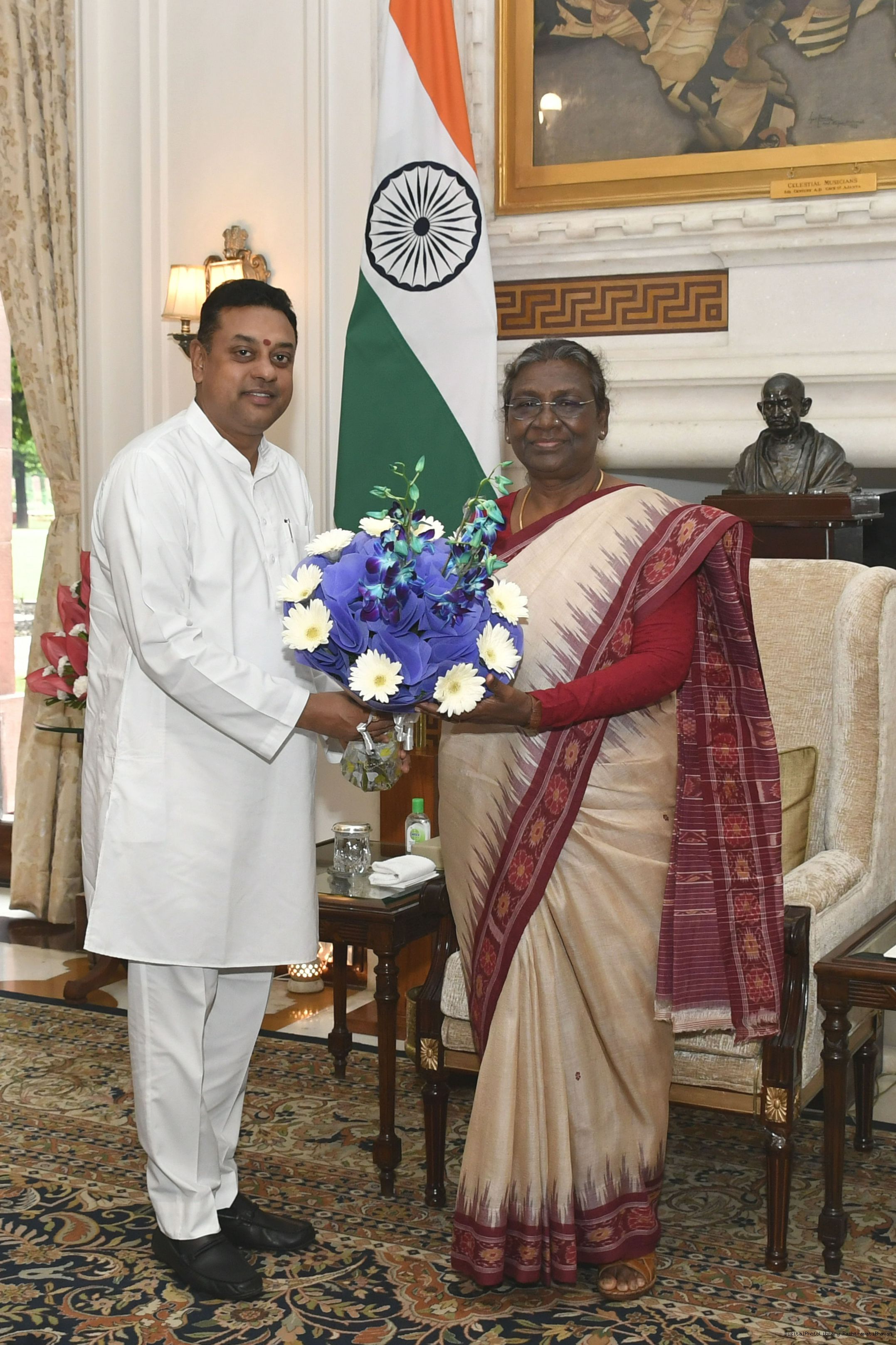 Dr. Sambit Patra, Spokesperson, BJP meeting with the President of India, Smt. Droupadi Murmu, at Rashtrapati Bhavan on Oct 10, 2022.