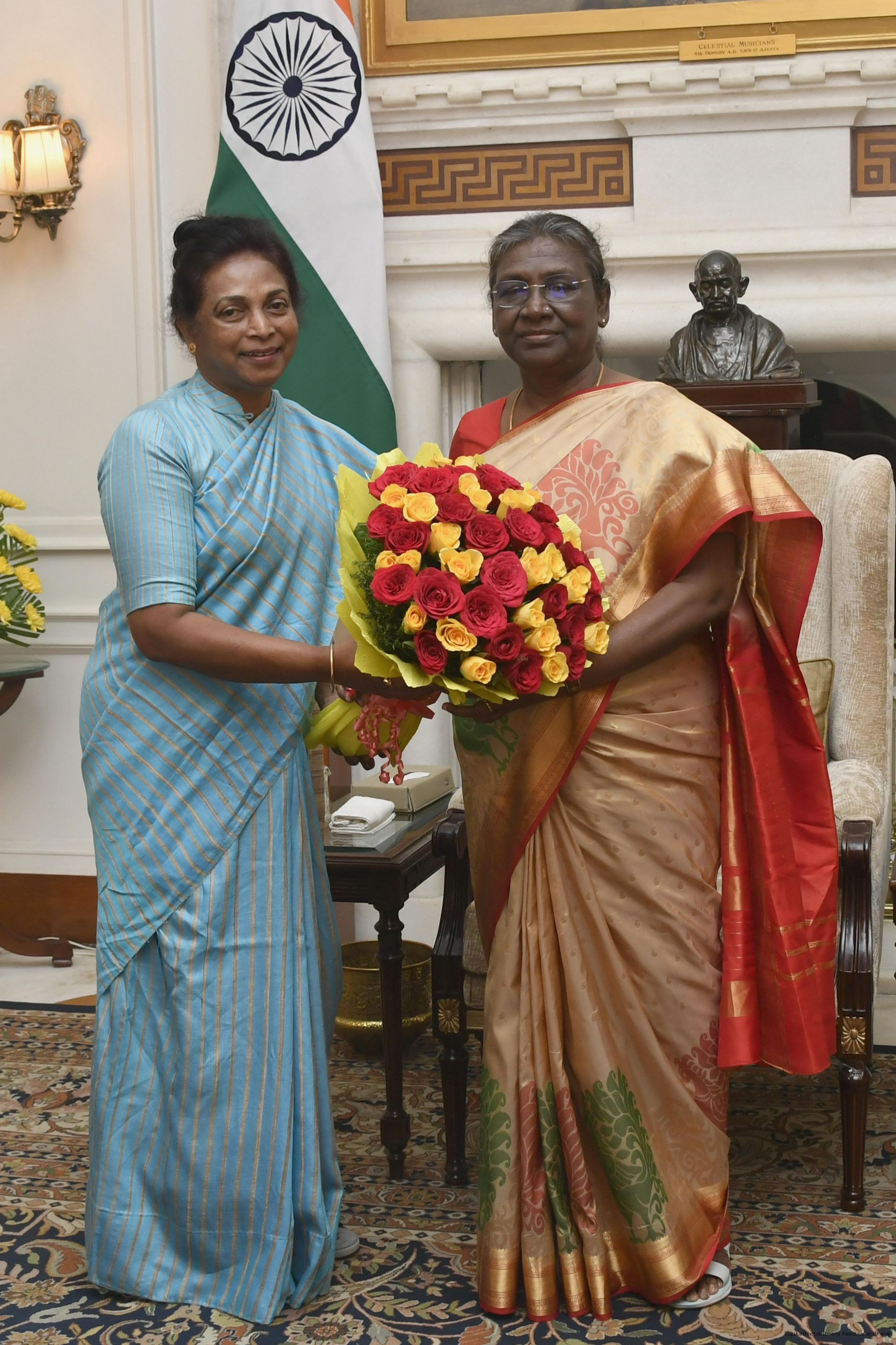 Dr. Vasudha Gupta, Director General (News) meeting with the President of India, Smt. Droupadi Murmu, at Rashtrapati Bhavan on Sep 22, 2022.