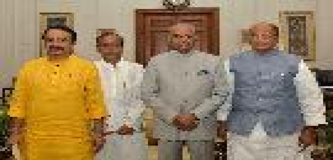 Dr. Murli Manohar Joshi, MP (LS) along with Shri Vijay Darda, Ex-MP (RS) & Chairman, Lokmat Group of Newspapers, Yavatmal, Dr. Subhash Kashyap, former Secretary General, Lok Sabha, Shri H.K. Dua, former MP (RS) and Shri Harish Gupta, Member Secretary & National Editor, Lokmat meeting with the President of India, Shri Ram Nath Kovind, at Rashtrapati Bhavan on June 02, 2018.