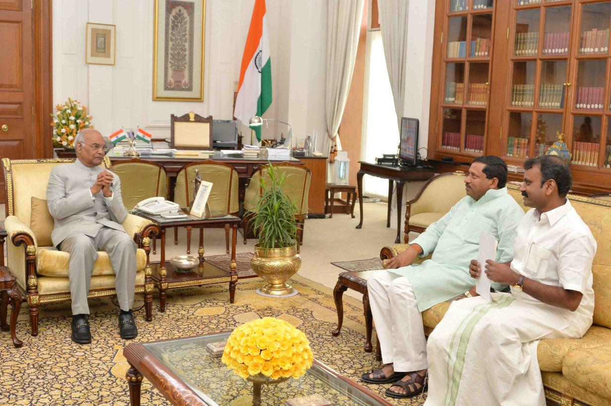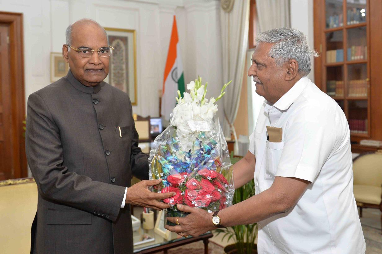 Dr. T. Subbirami Reddy, MP (LS) & Chairman Committee on Subordinate Legislation (Rajya Sabha) meeting with the President of India, Shri Ram Nath Kovind, at Rashtrapati Bhavan on March 28, 2018.