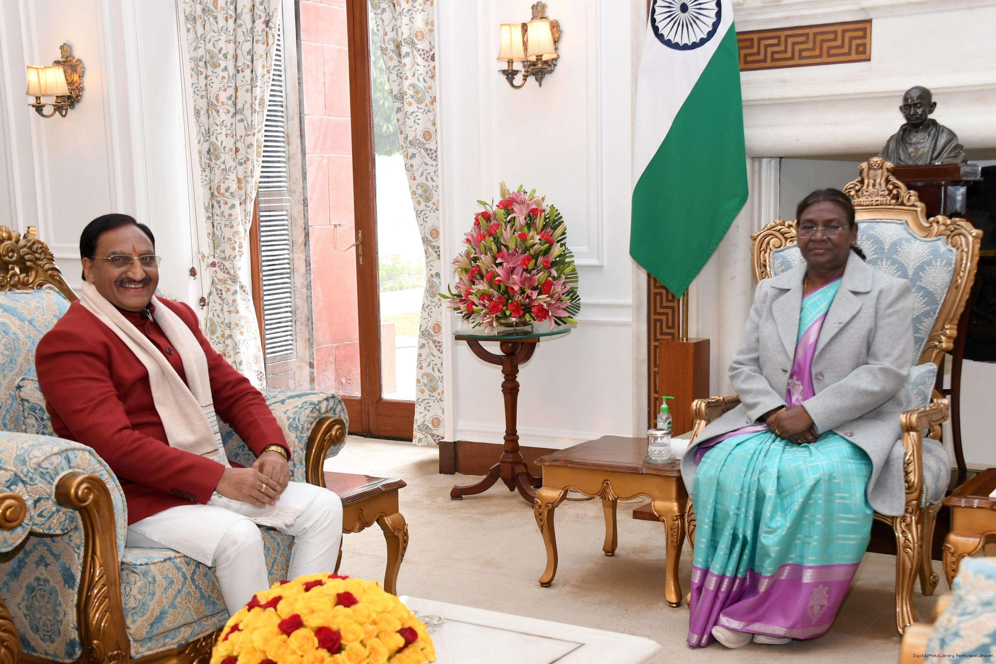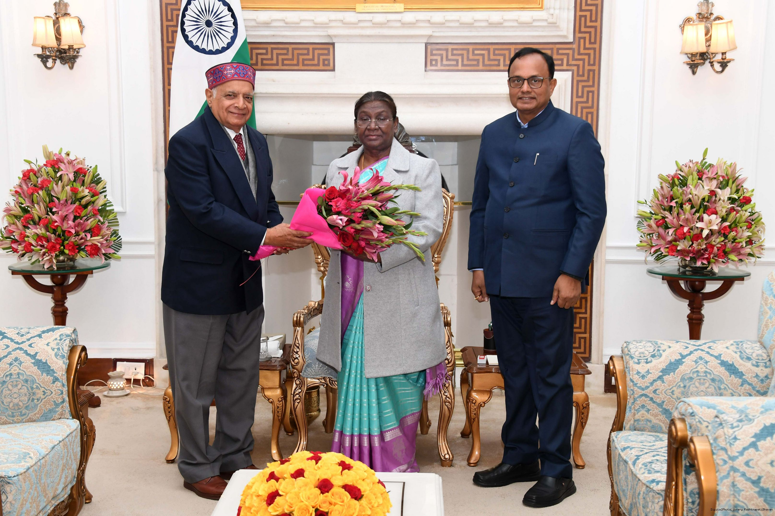 Dr. Ramesh Pokhriyal Nishank, Member of Parliament from Haridwar Constituency meeting with the President of India, Smt. Droupadi Murmu, at Rashtrapati Bhavan on Jan 24, 2024.