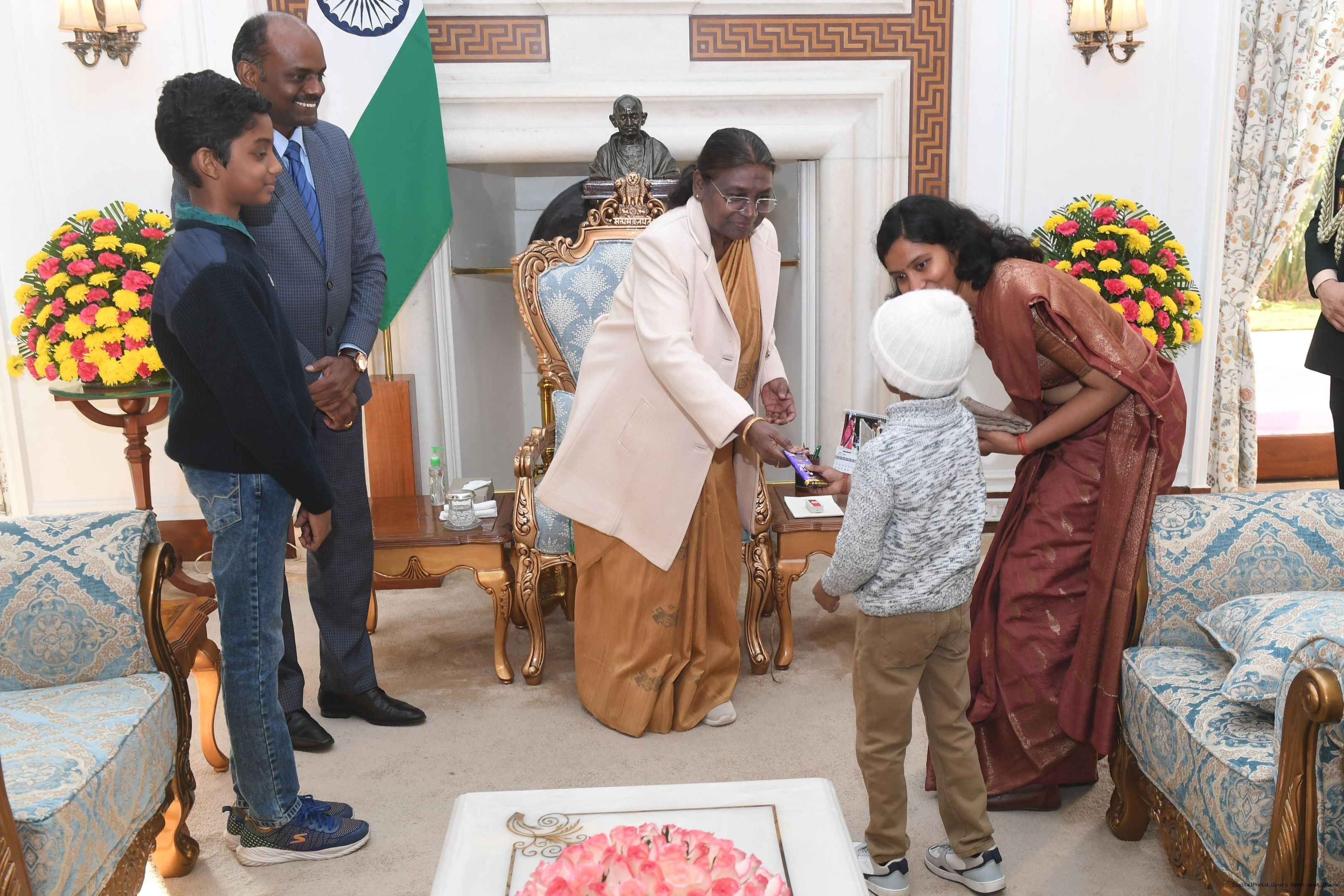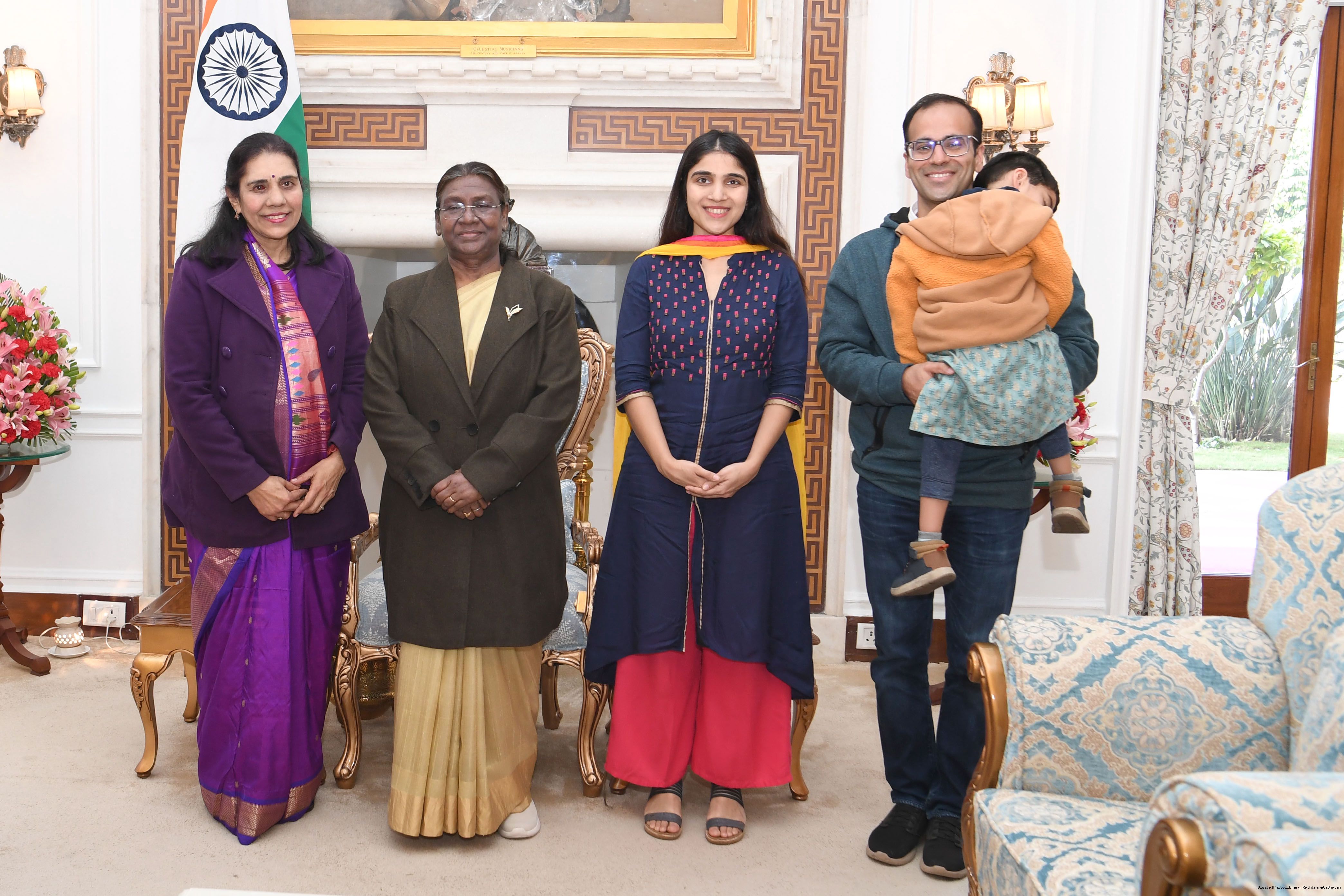 Dr. Niti Khunger, Professor and HOD, Consultant Dermatologist, VM Medical College, Safdarjung Hospital, New Delhi along with family members meething with the President of India Smt. Droupadi Murmu at Rashtrapati Bhavan on February 6, 2024.