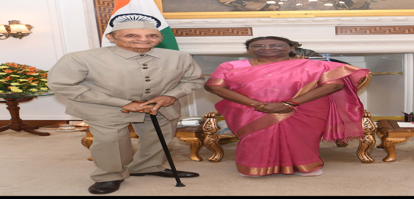 Dr. Karan Singh, Former Union Cabinet Minister and Former Member of Parliament meeting with the President of India, Smt. Droupadi Murmu at Rashtrapati Bhavan on November 13, 2023.