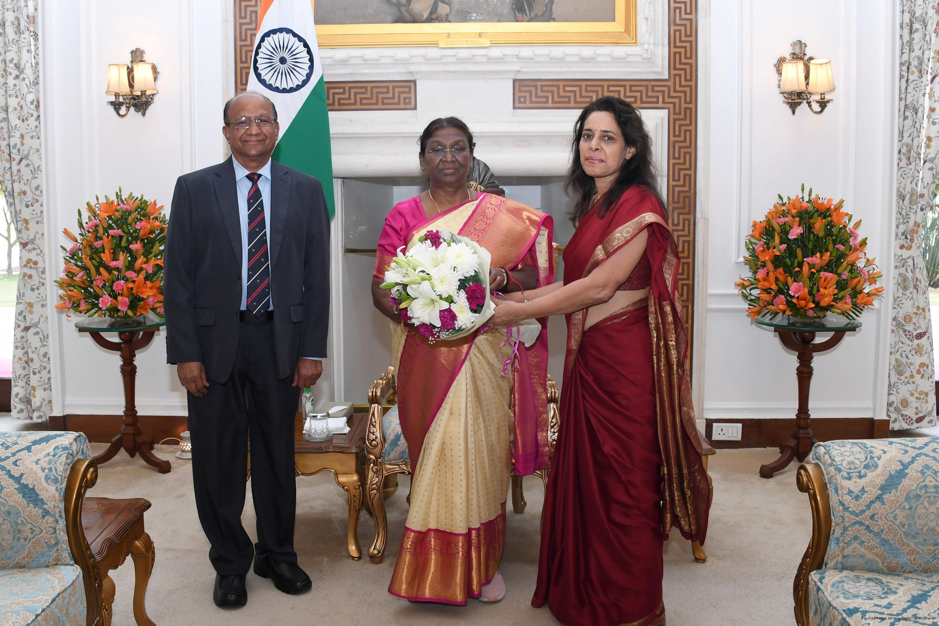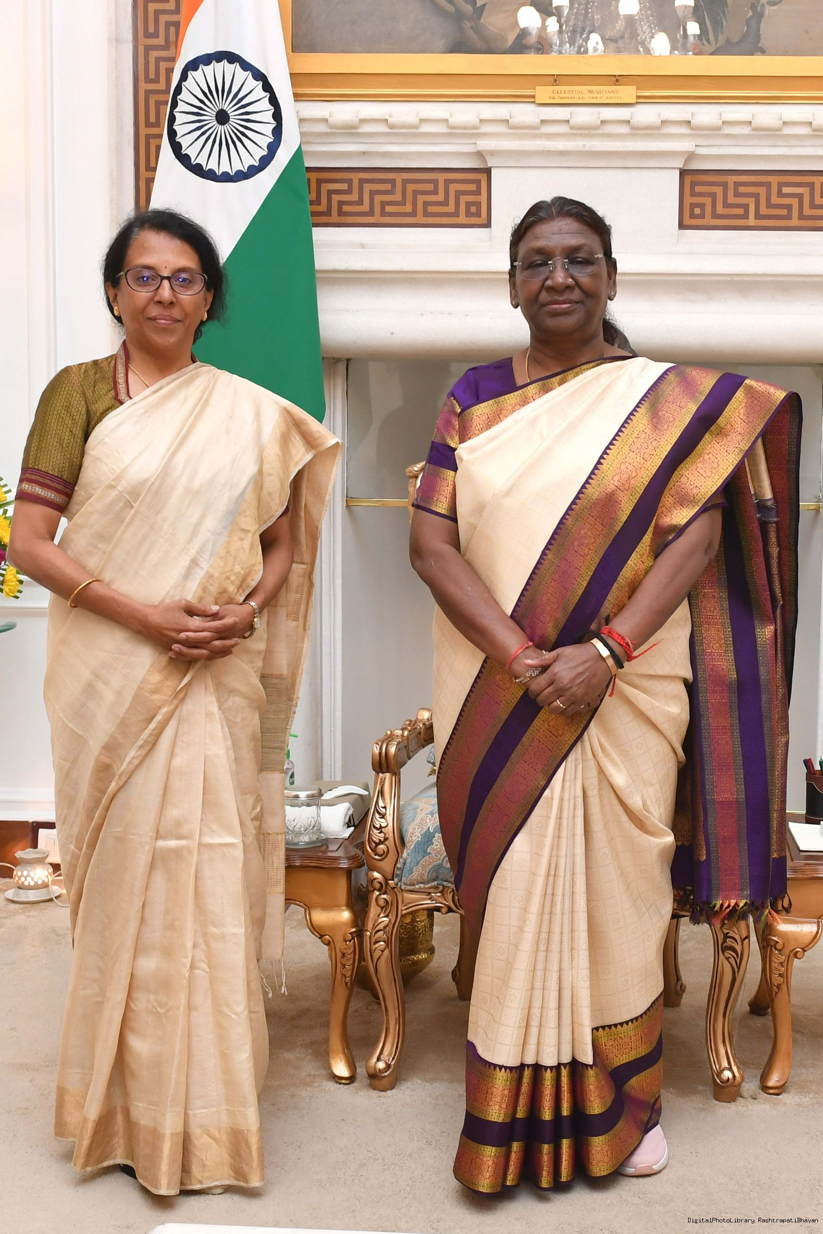 Dr. Malini V. Shankar, Vice Chancellor, Indian Maritime University, Chennai meeting with the President of India, Smt. Droupadi Murmu at Rashtrapati Bhavan on October 16, 2023.