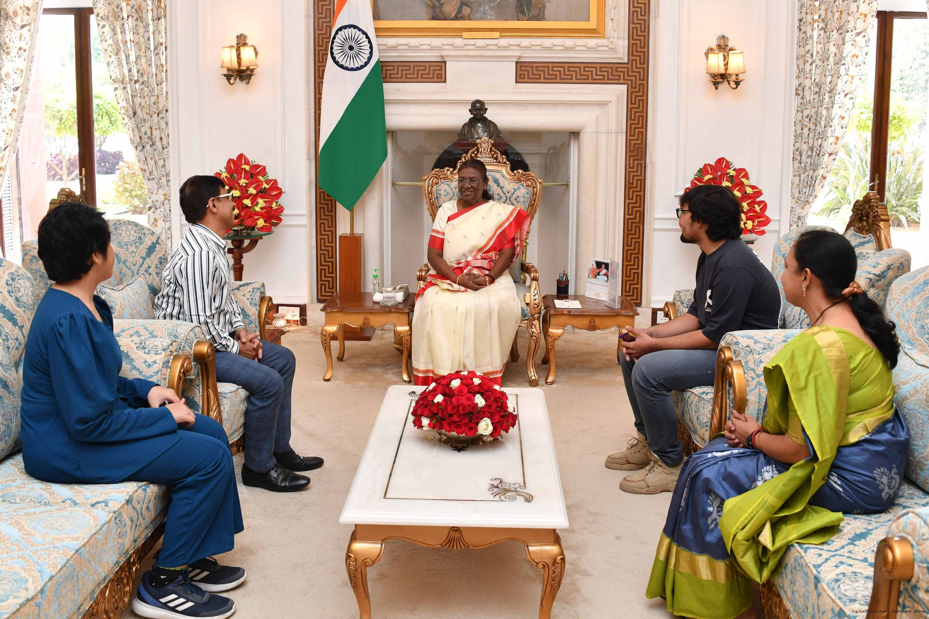 Dr. Subhalaxmi Dagara Do Late Shri Drupad Chandra Dagara along with others meeting with the President of India Smt. Droupadi Murmu at Rashtrapati Bhavan on December 7, 2023.