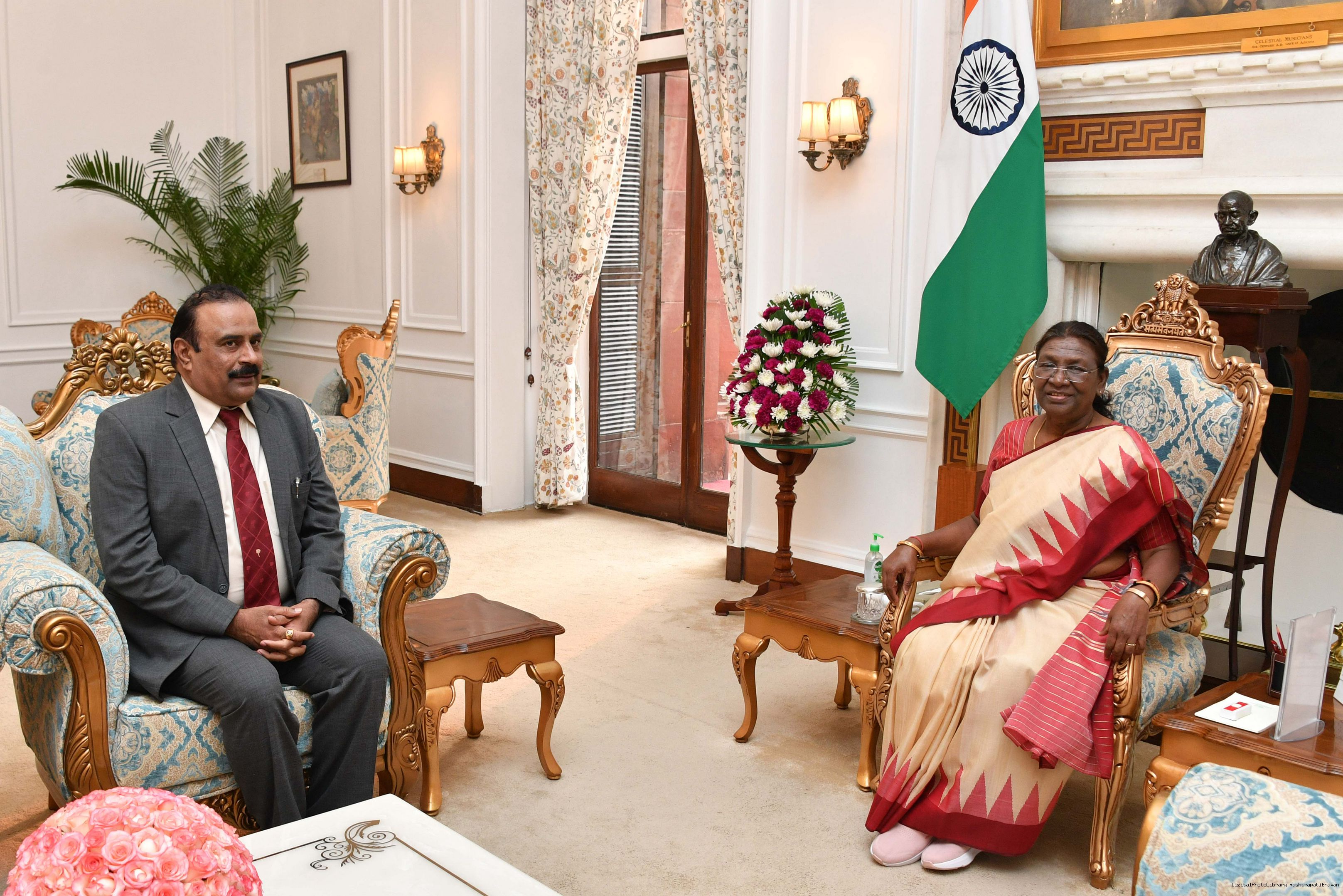 Dr. Dinesh Dasa, Member, UnionPublic Service Commission, New Delhi meeting with the President of India, Smt. Droupadi Murmu at Rashtrapati Bhavan on October 30, 2023.