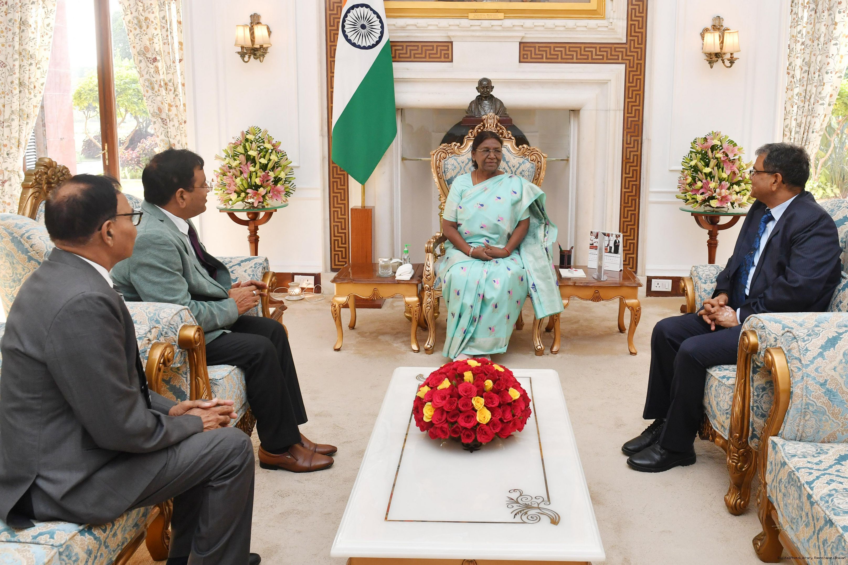 Dr. Chandra Bhanu Satpathy along with others meeting with the President of India Smt. Droupadi Murmu at Rashtrapati Bhavan on December 8, 2023.