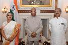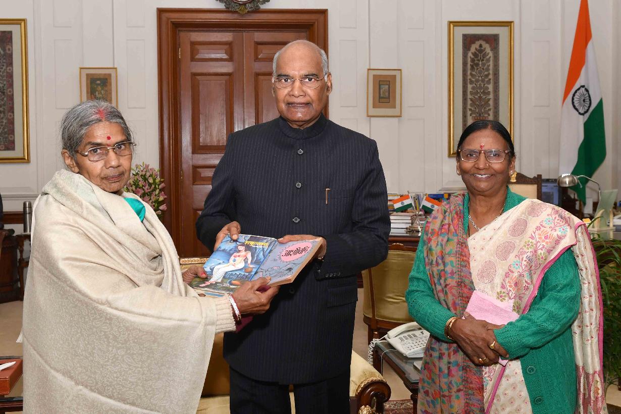 Ms. Rama Devi, MP (Lok Sabha) along with Smt. Krishna Kumari 'Kumud', poetess and writer meeting with the President of India, Shri Ram Nath Kovind, at Rashtrapati Bhavan on February 11, 2019.