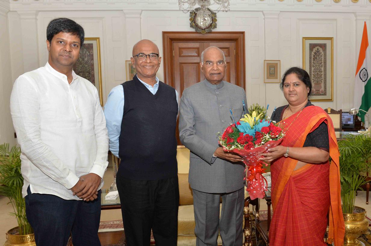 Ms. Geetha Kothapalli, MP (Lok Sabha) & President, Jana Jagruti Party along with Dr. Guru Shankar, Chairman, Meenakshi Mission Hospitals, Madurai and Dr. PR Subhas Chandran, Social Reformer and freelancer Journalist meeting with the President of India, Shri Ram Nath Kovind, at Rashtrapati Bhavan on February 12, 2019.