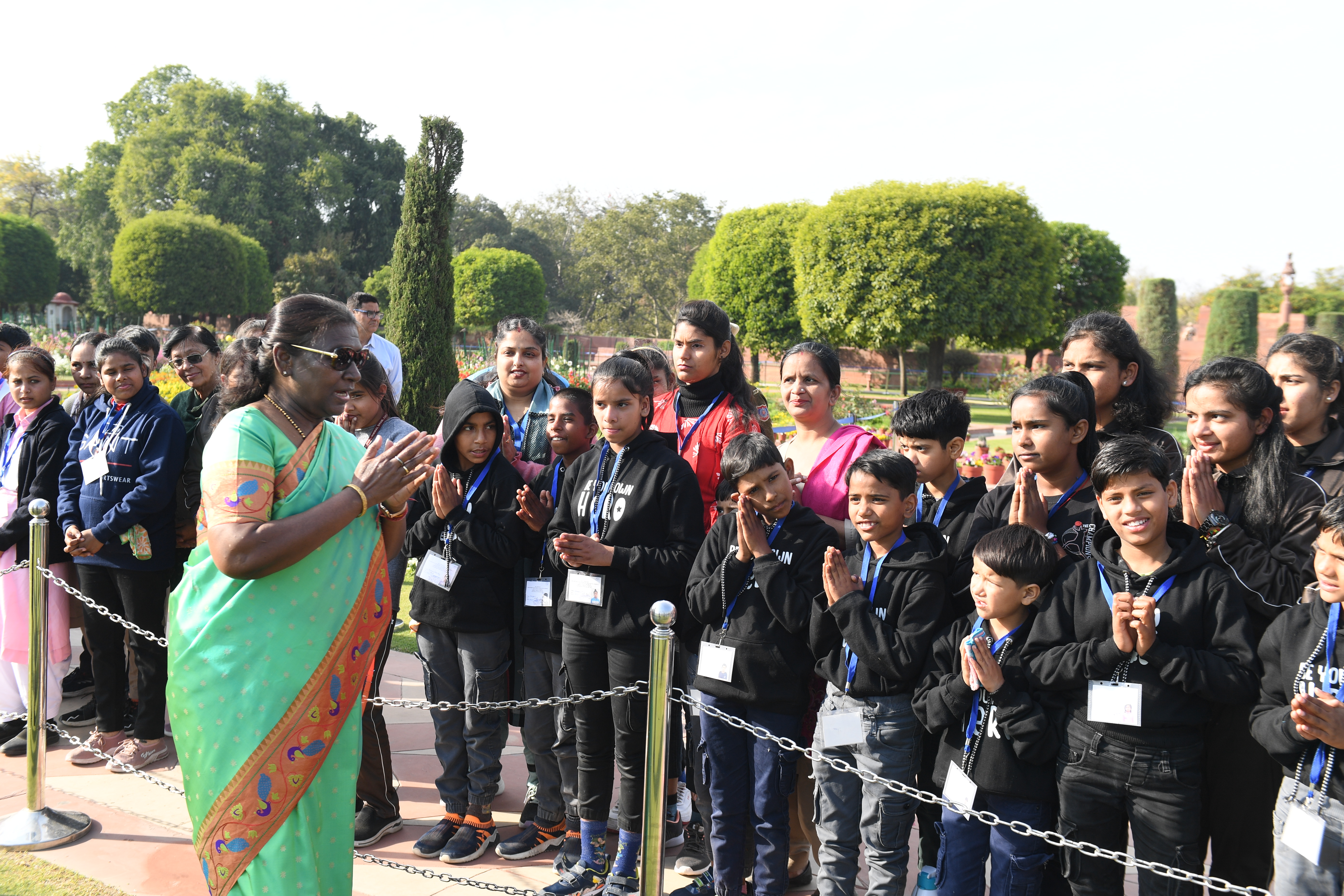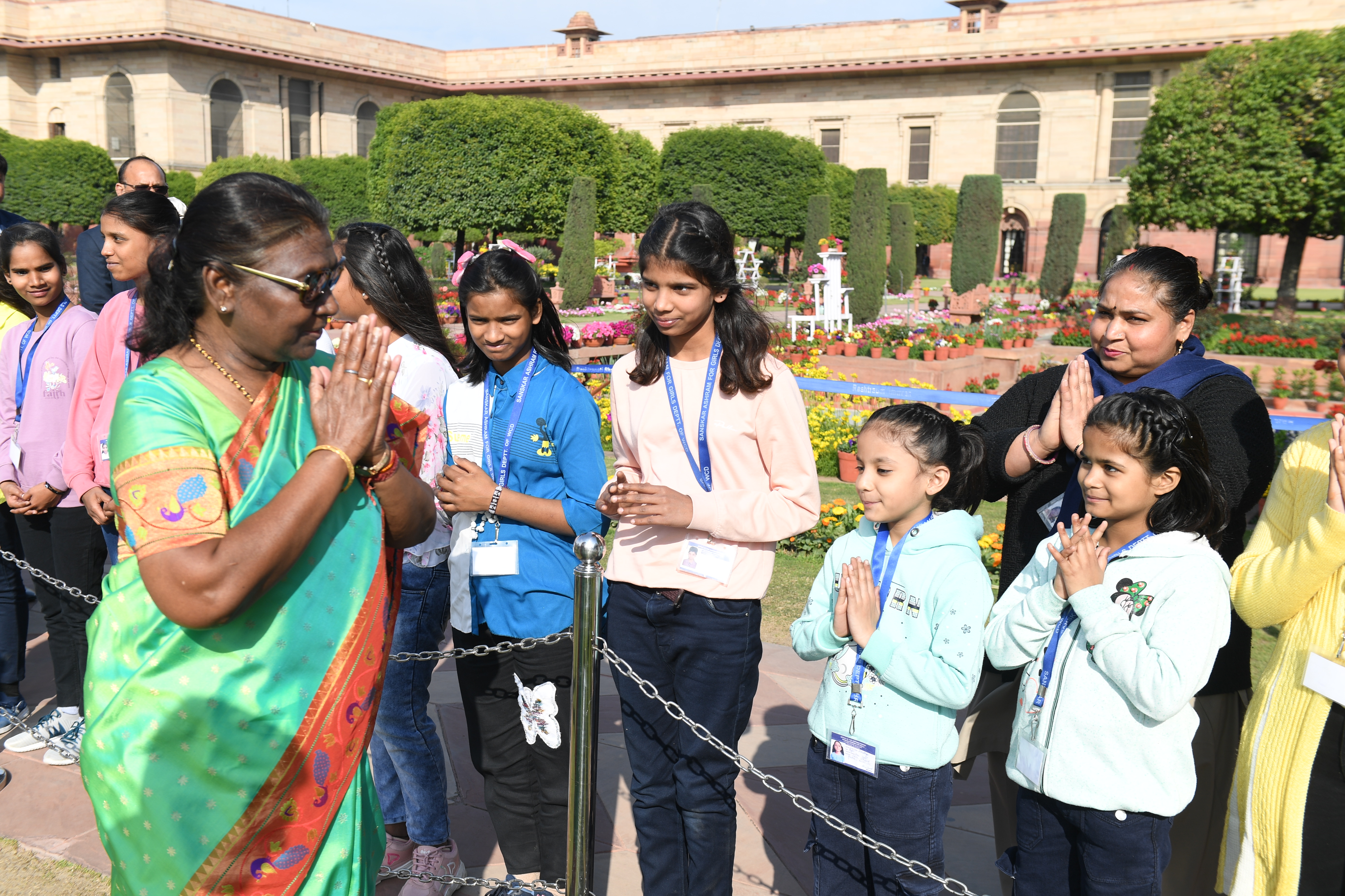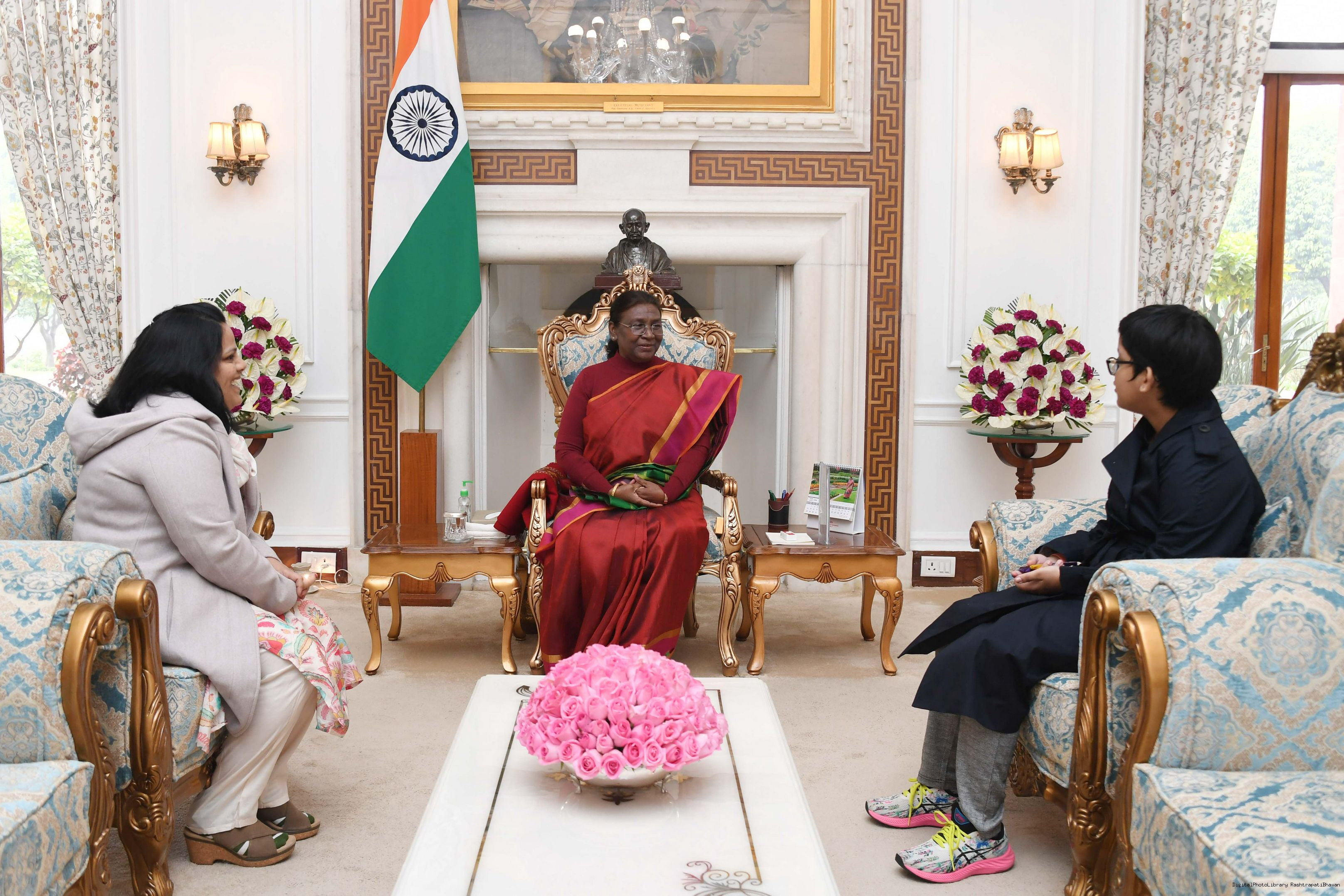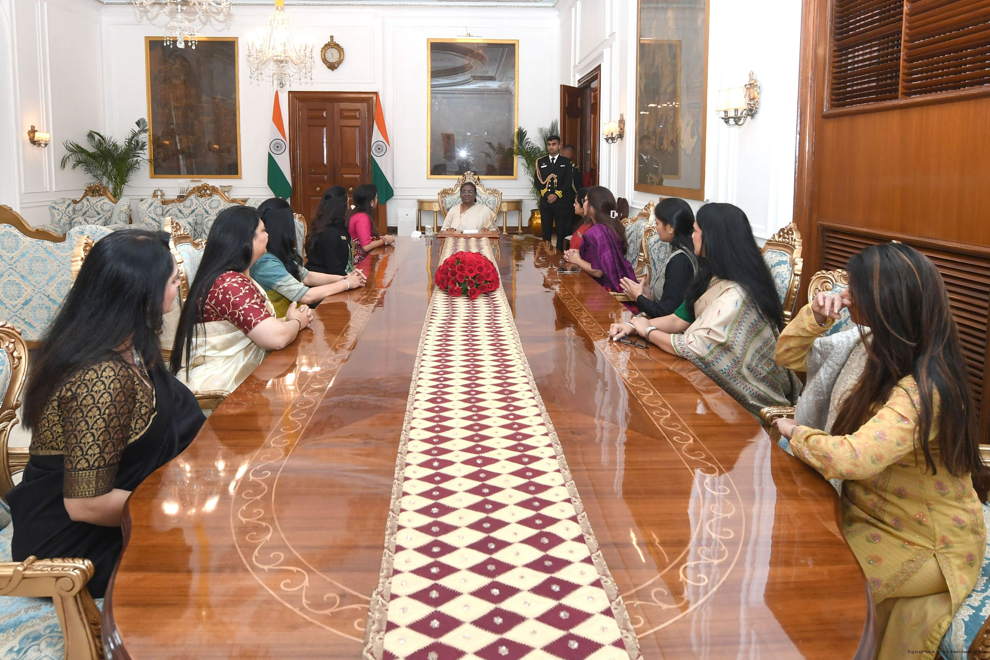 Ms. Ravyanshi Singh along with other meeting with the President of India, Smt. Droupadi Murmu, at Rashtrapati Bhavan on Jan 03, 2024.