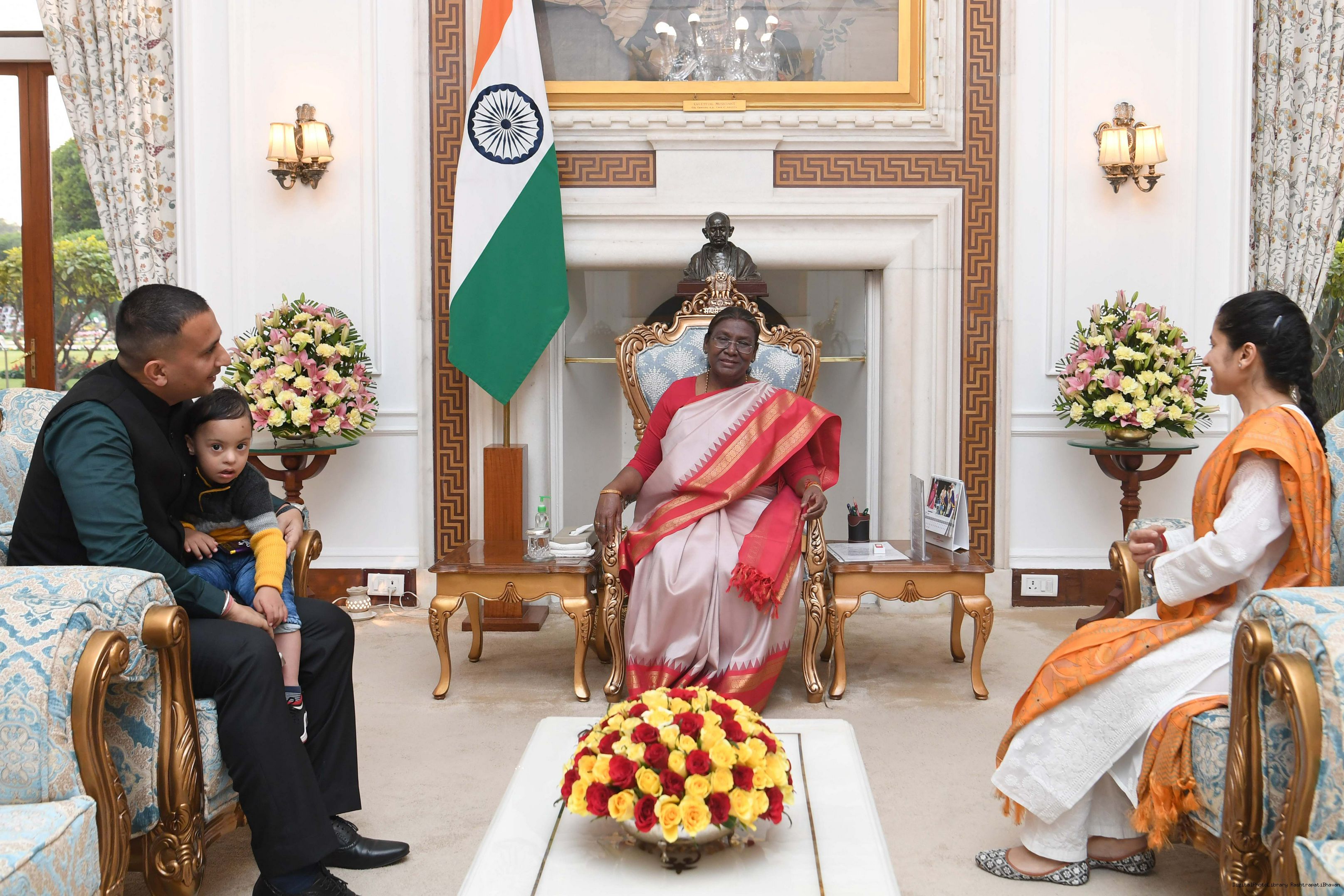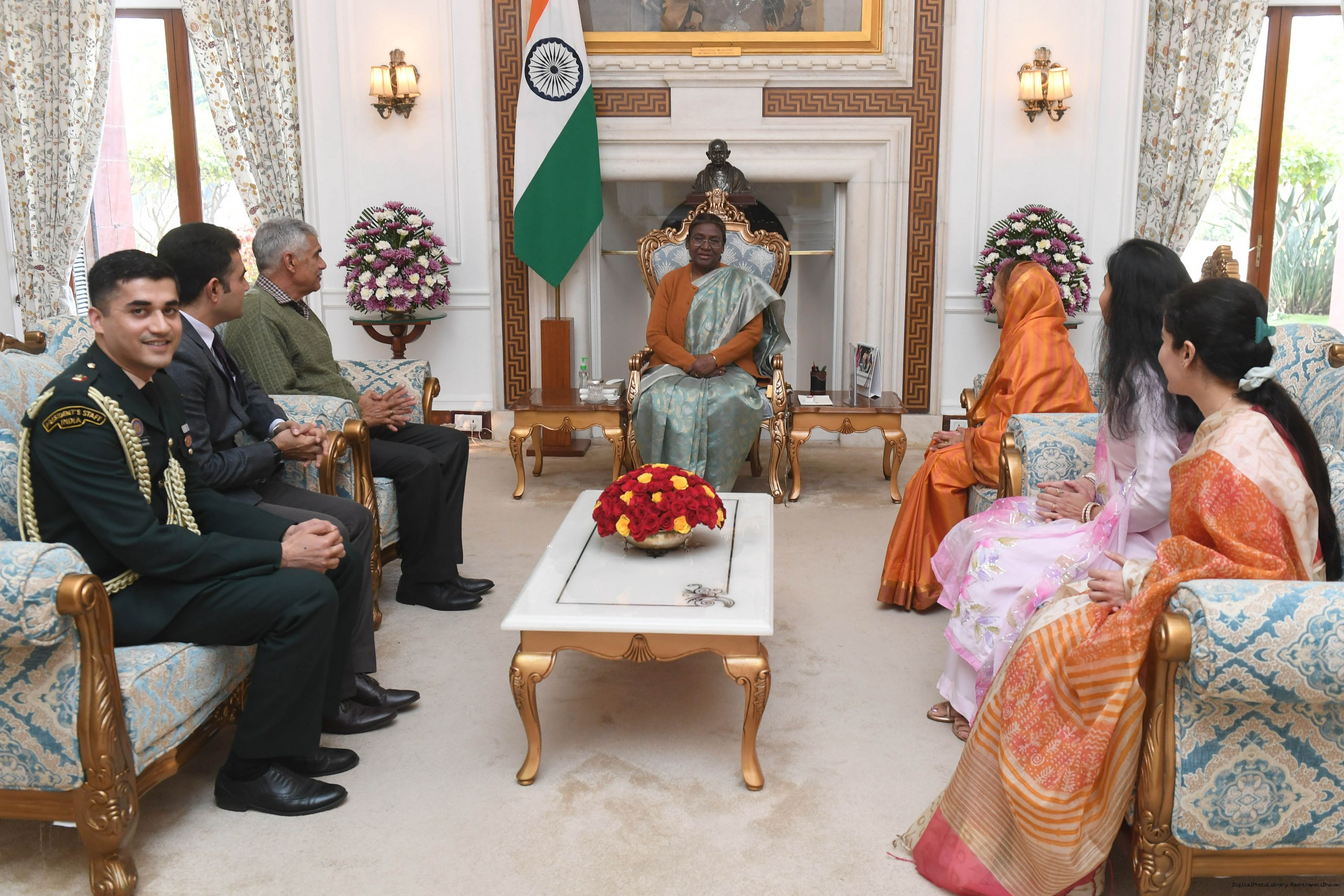 Major Rohit Rasgotra Along with Family meeting with the President of India, Smt Droupadi Murmu at Rashtrapati Bhavan on February 11, 2024