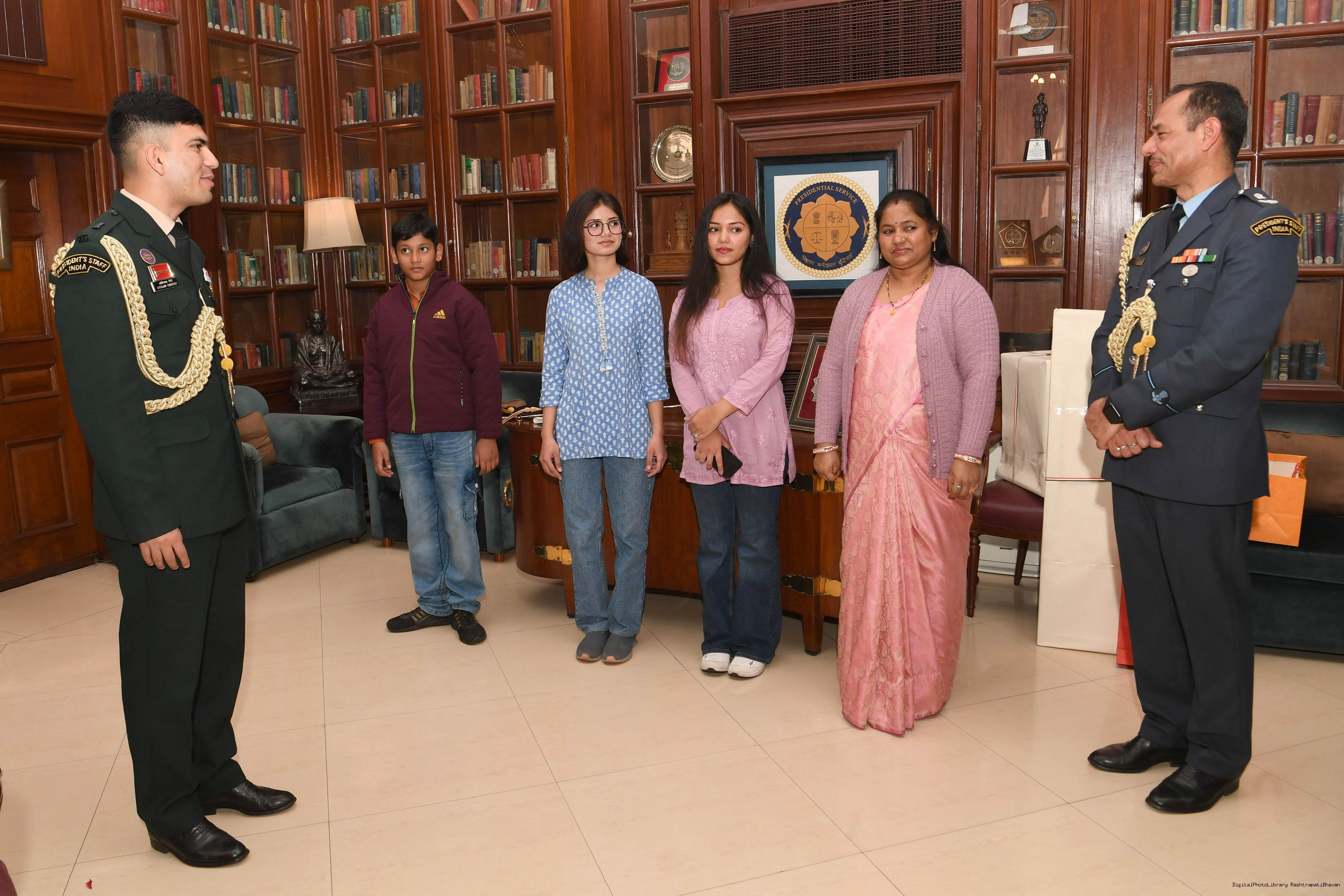 MWO Bhupendra singh JCO ADC along with Family members meeting with the President of India, Smt Droupadi Murmu at Rashtrapati Bhavan on February 11, 2024