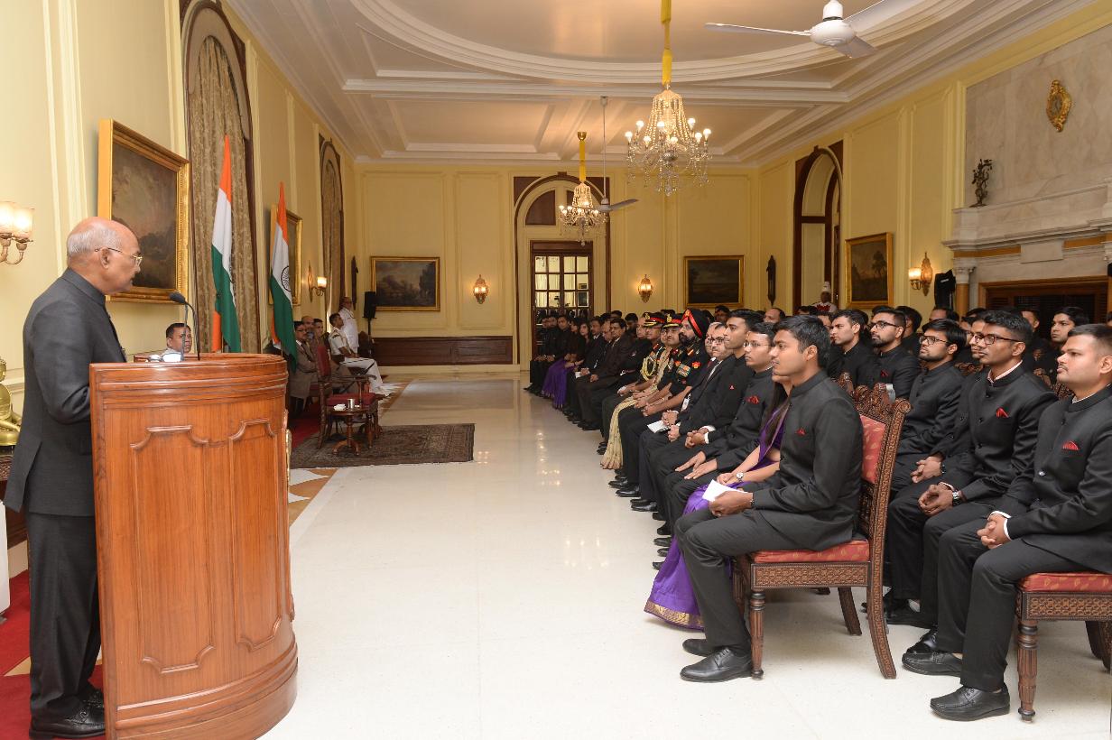 Officer-trainees of the Military Engineer Service meeting with the President of India, Shri Ram Nath Kovind, at Rashtrapati Bhavan on October 15, 2019.