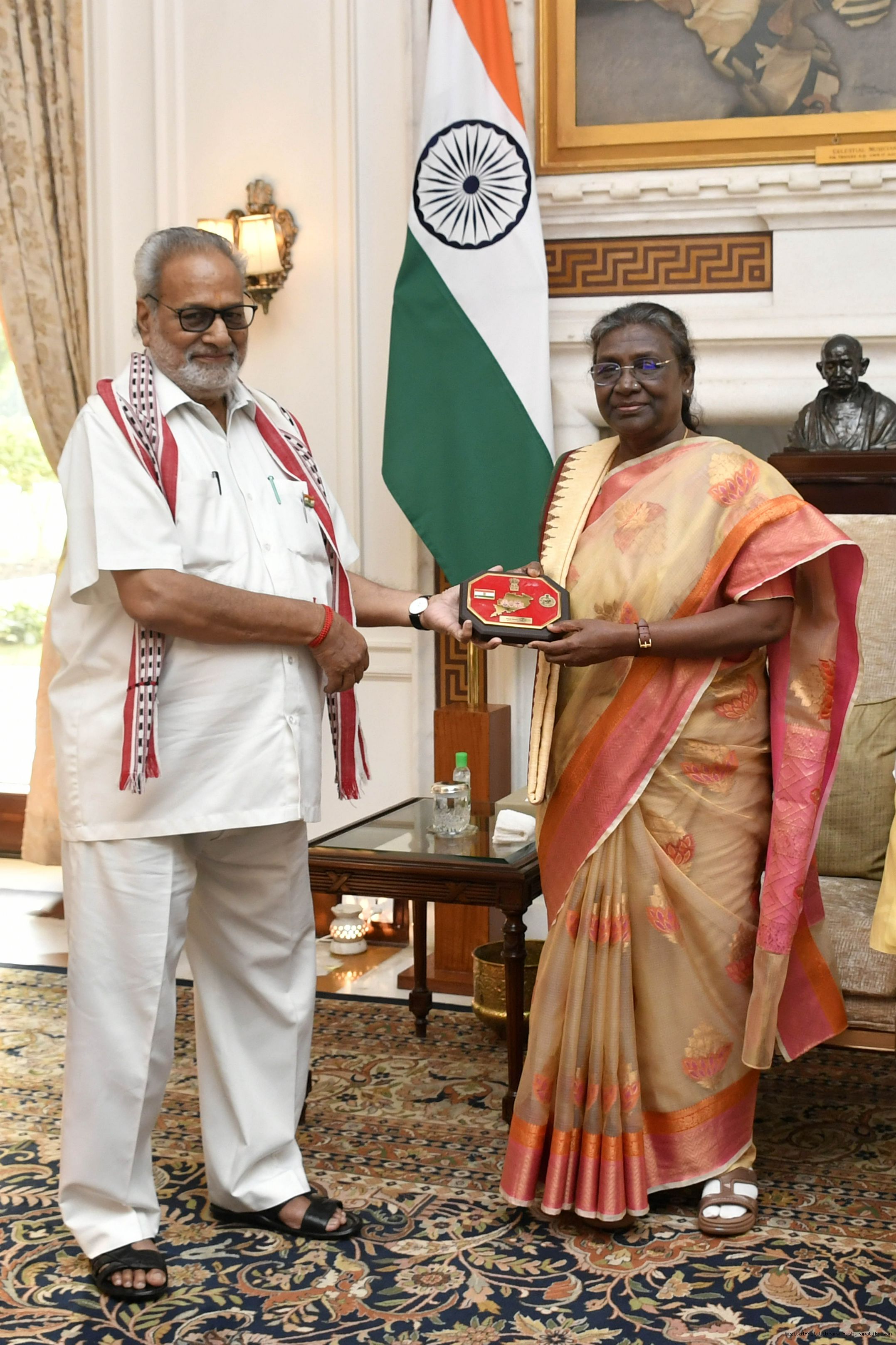 Prof. Nageshwar Rao, Vice Chancellor, Indira Gandhi National Open University meeting with the President of India, Smt. Droupadi Murmu, at Rashtrapati Bhavan on Aug 30, 2022.