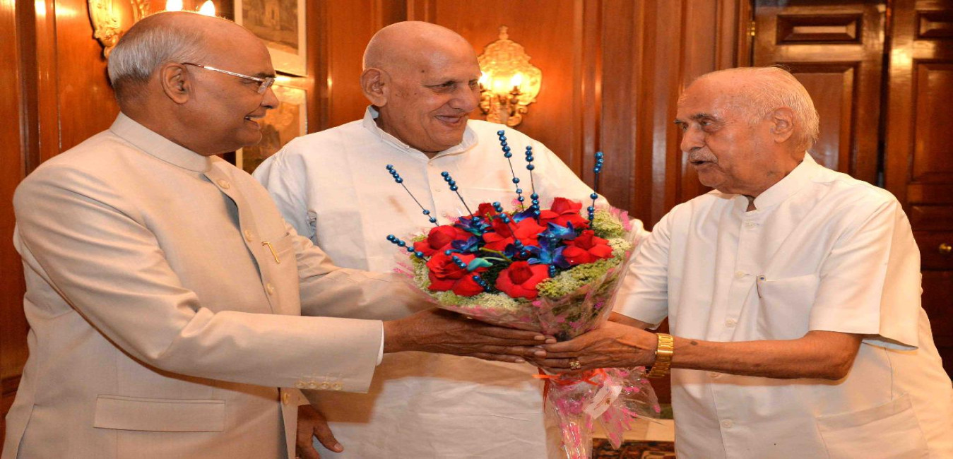 Shri Ramnarayanji, former Karyalay Pramukh, RSS, Nagpur along with other meeting with the President of India, Shri Ram Nath Kovind, at Rashtrapati Bhavan on June 02, 2018.