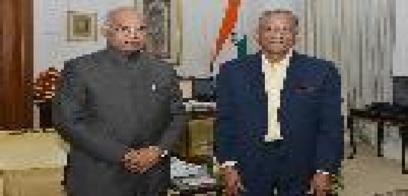 Shri Justice Virender Singh, former Chief Justice, High Court of Jharkhand and presently Chairperson, Armed Forces Tribunal, Principal Bench, New Delhi meeting with the President of India, Shri Ram Nath Kovind, at Rashtrapati Bhavan on June 06, 2018.