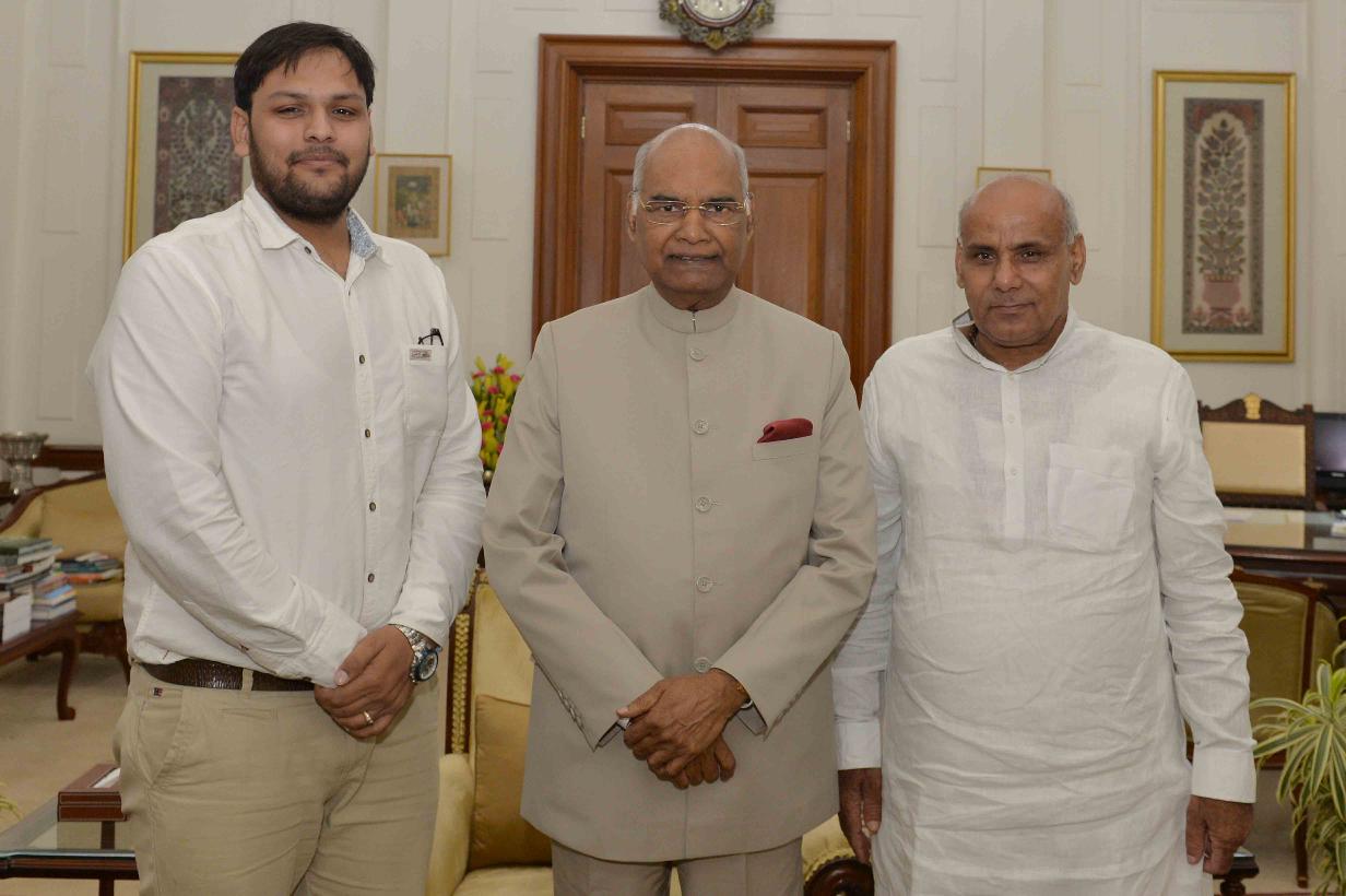 Shri Rajendra Singh Chauhan, Ex-Zilla Panchayat Adhyaksh, Kanpur Dehat along with his son Shri Ajay Pratap Singh meeting with the President of India, Shri Ram Nath Kovind, at Rashtrapati Bhavan on June 09, 2018.