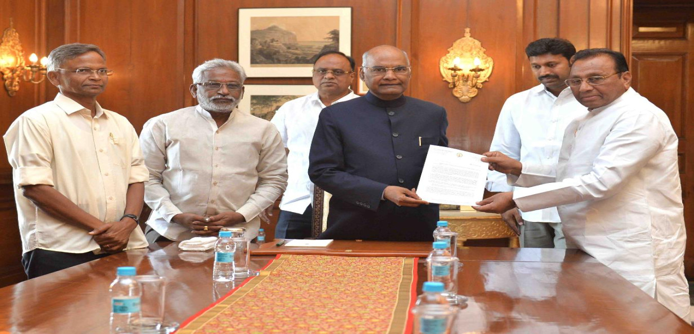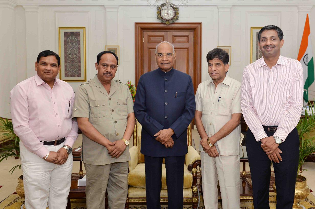 Shri M. Rajamohan Reddy, Leader of YSRCP in Lok Sabha along with a delegation of MPs belonging to YSR Congress Party from Andhra Pradesh meeting with the President of India, Shri Ram Nath Kovind, at Rashtrapati Bhavan on April 17, 2018.