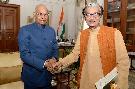 Smt. & Shri P.K. Sinha, Cabinet Secretary meeting with the President of India, Shri Ram Nath Kovind, at Rashtrapati Bhavan on April 17, 2018.
