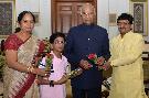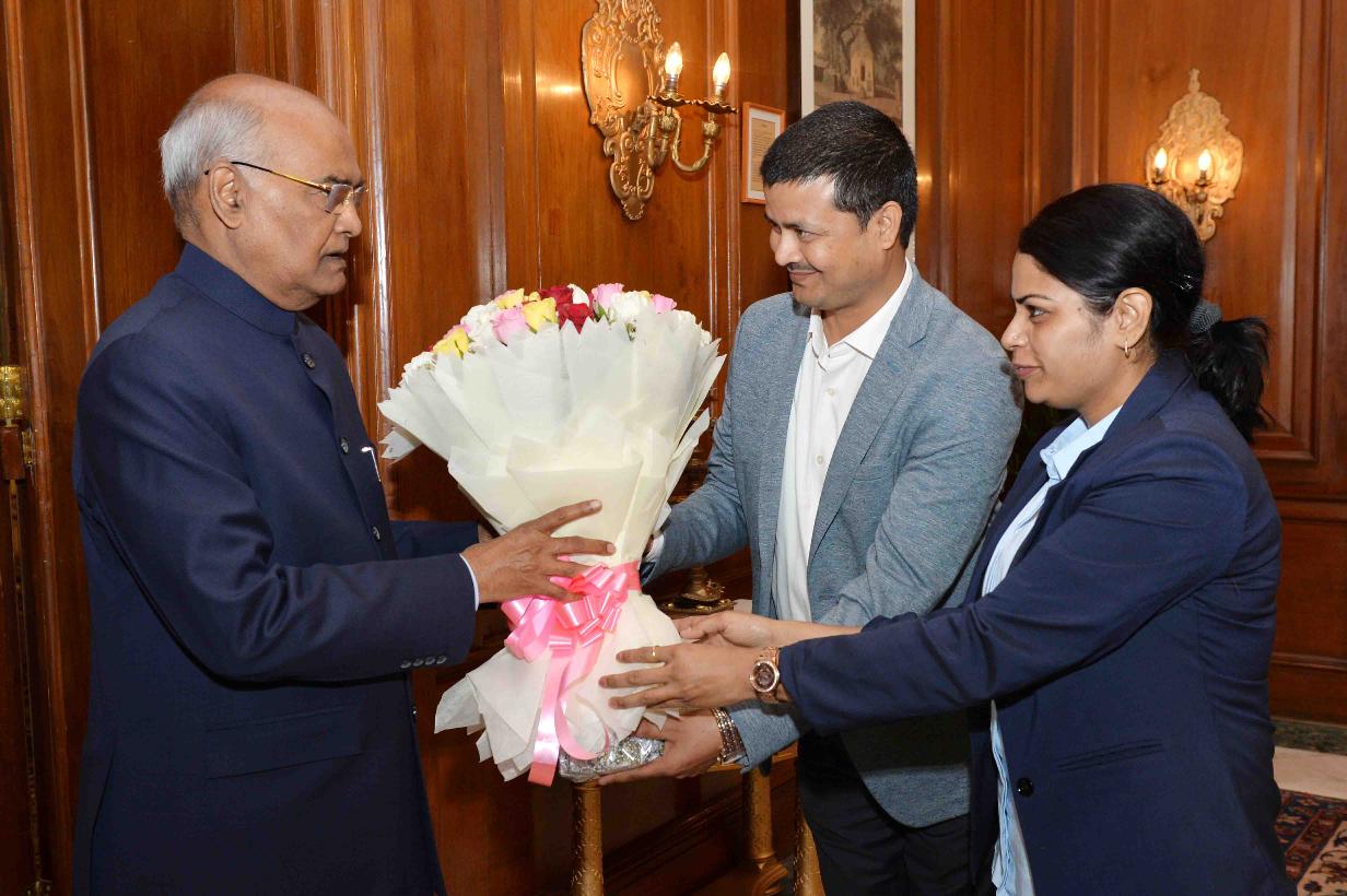 Shri Yogendra Chandolia meeting with the President of India, Shri Ram Nath Kovind, at Rashtrapati Bhavan on April 16, 2018.