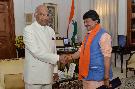 Shri Kailash Vijayvargiya, MLA, Madhya Pradesh & National General Secretary, Bhartiya Janata Party meeting with the President of India, Shri Ram Nath Kovind, at Rashtrapati Bhavan on April 16, 2018.