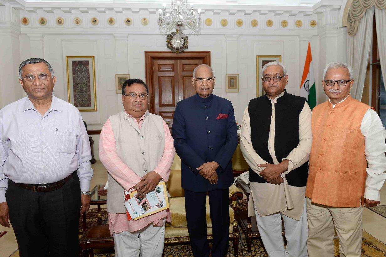 Shri Rakesh Jain, Organisation Secretary with others from Rashtriya Sewa Bharati meeting with the President of India, Shri Ram Nath Kovind, at Rashtrapati Bhavan on February 26, 2018.