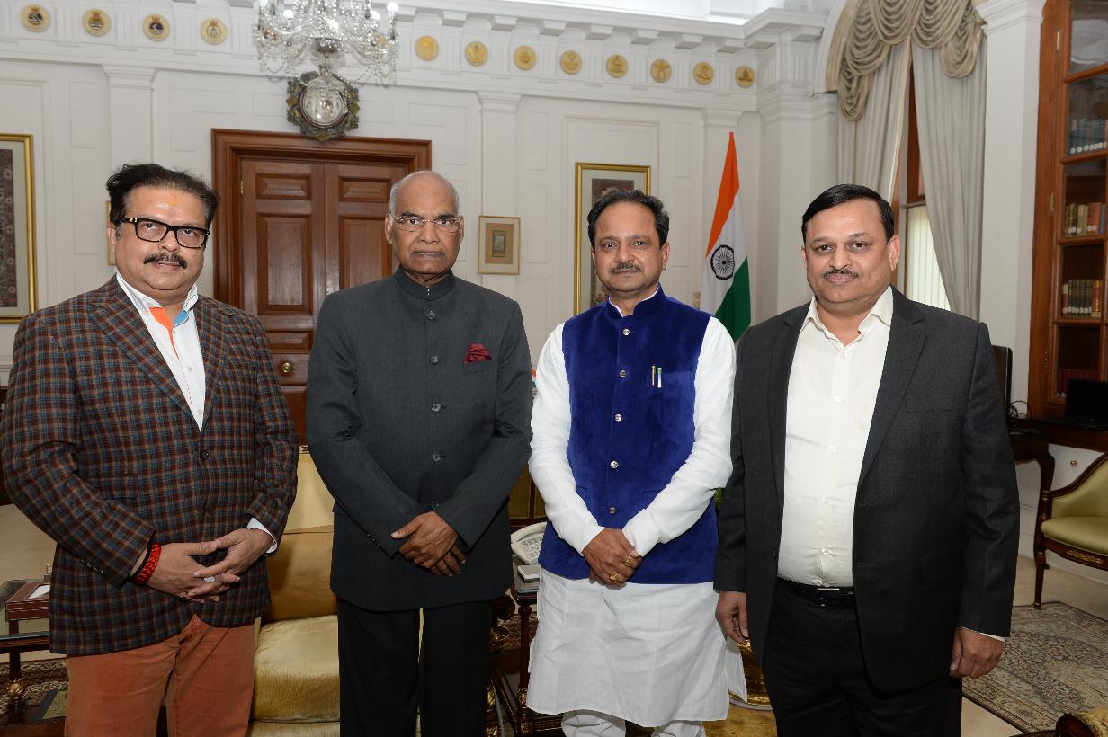 Shri Subhash Kankheria and Shri Subhash Chandoliya meeting with the President of India, Shri Ram Nath Kovind, at Rashtrapati Bhavan on February 26, 2018.