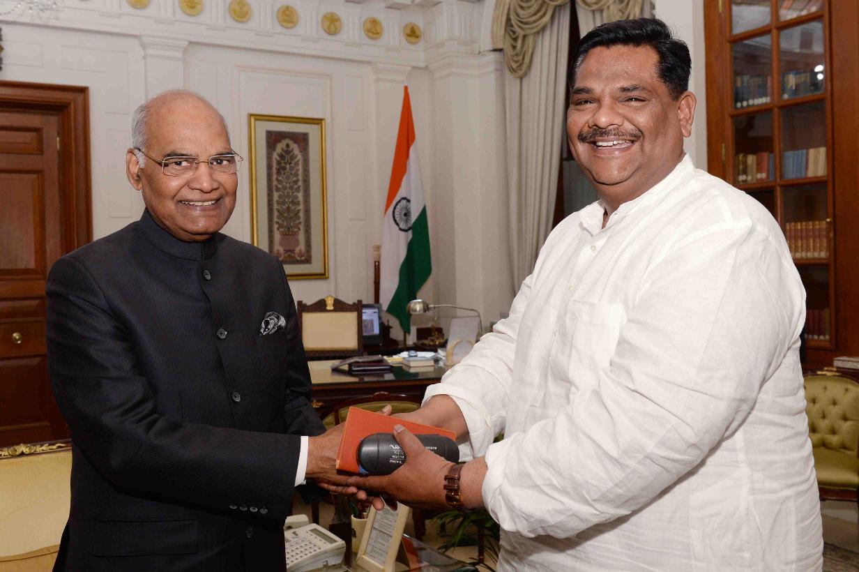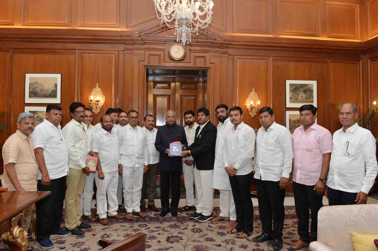 Shri Sadashiv Lokhande, MP (LS) with others from Shirdi meeting with the President of India, Shri Ram Nath Kovind, at Rashtrapati Bhavan on February 21, 2018.
