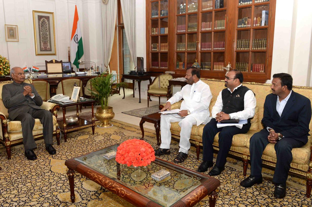 Shri Manoj Rajoria, MP (LS) with others meeting with the President of India, Shri Ram Nath Kovind, at Rashtrapati Bhavan on February 13, 2018.