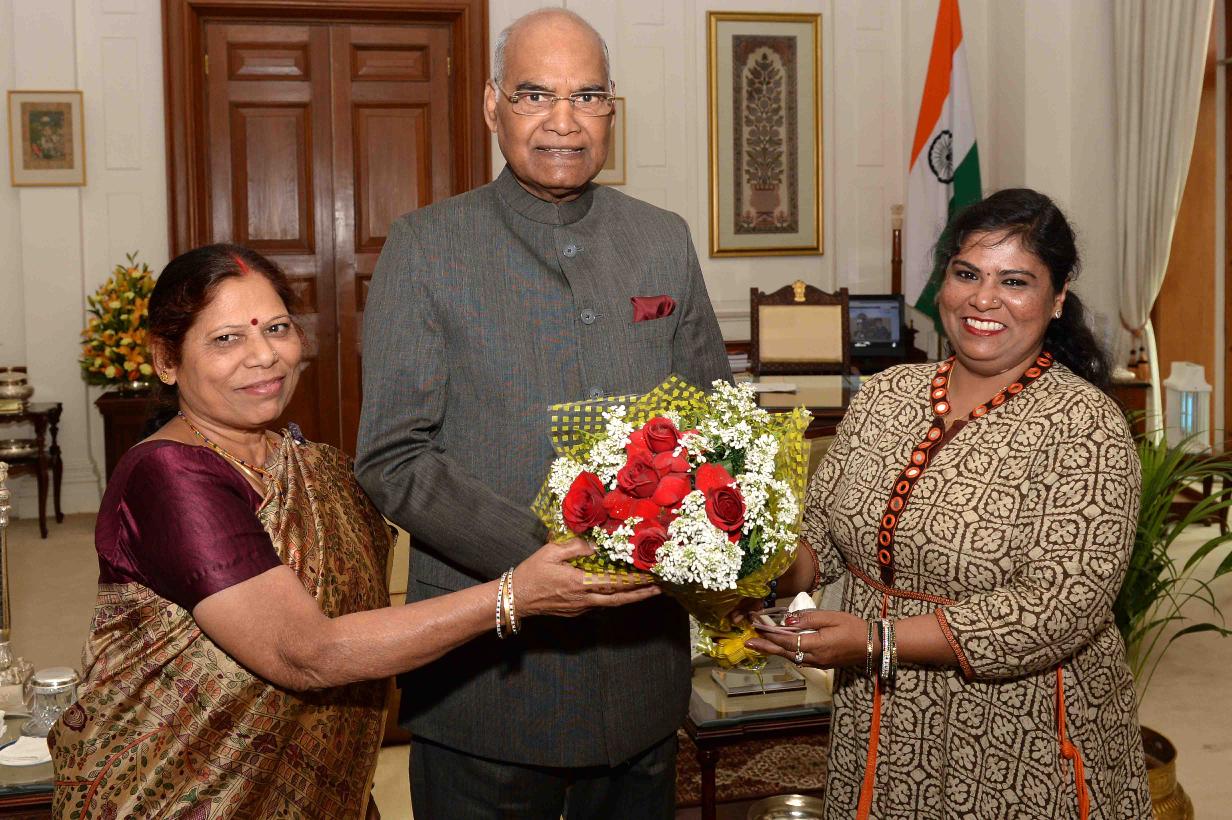 Smt. Kiran Lal with others from Satya Guru Kabir Kori/Koli Mahasabha, Jhansi meeting with the President of India, Shri Ram Nath Kovind, at Rashtrapati Bhavan on February 19, 2018.