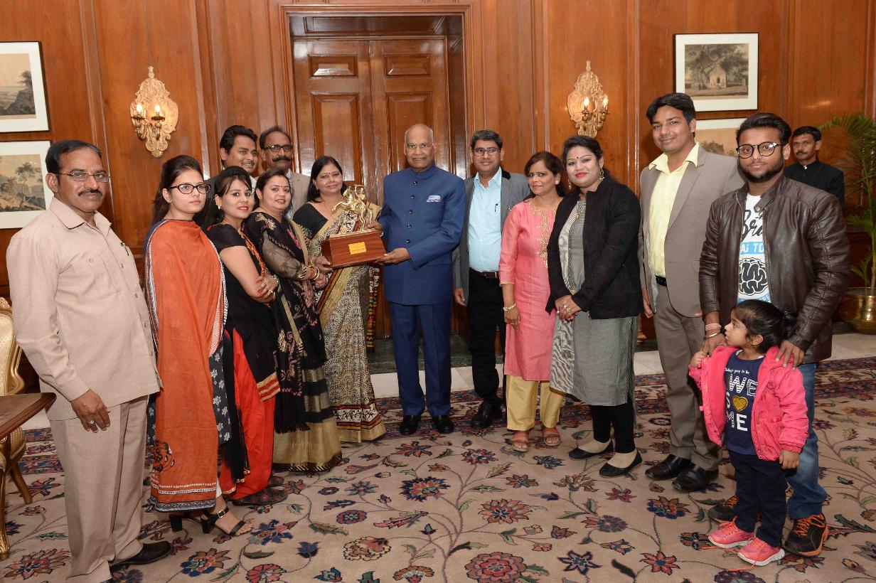 Shri Brajesh Kumar and his family members from Saket, New Delhi meeting with the President of India, Shri Ram Nath Kovind, at Rashtrapati Bhavan on February 26, 2018.