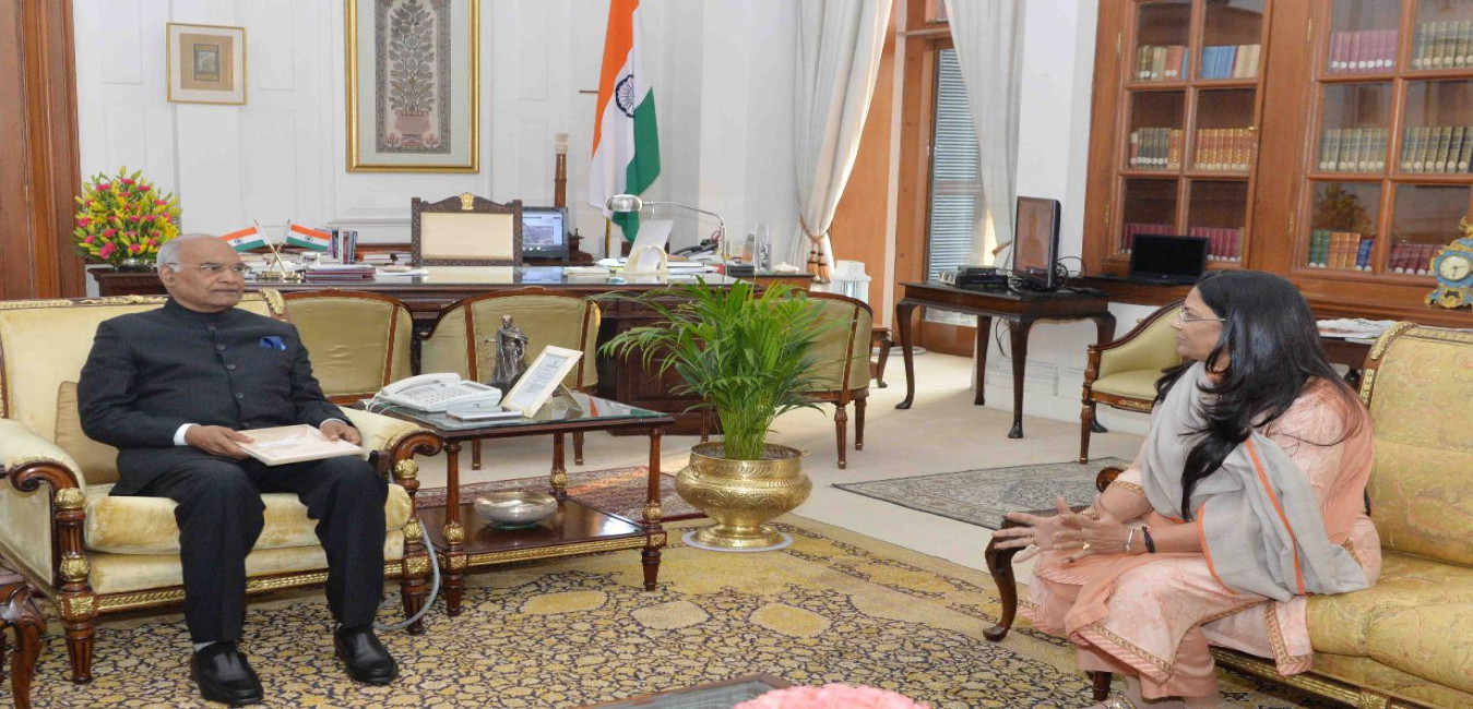 Smt. Santosh Ahlawat, MP (LS) meeting with the President of India, Shri Ram Nath Kovind, at Rashtrapati Bhavan on February 01, 2018.