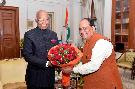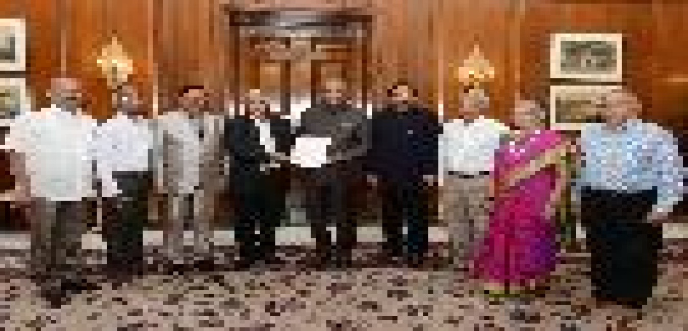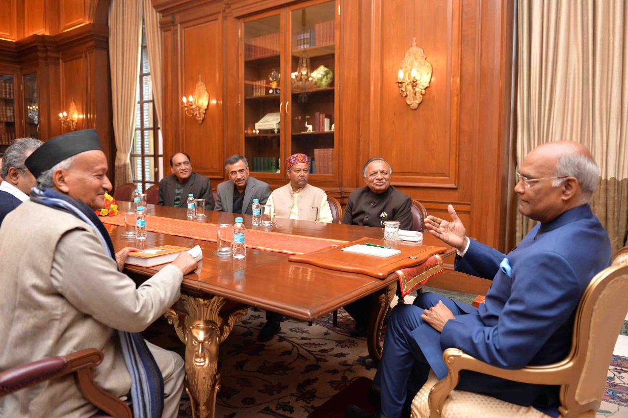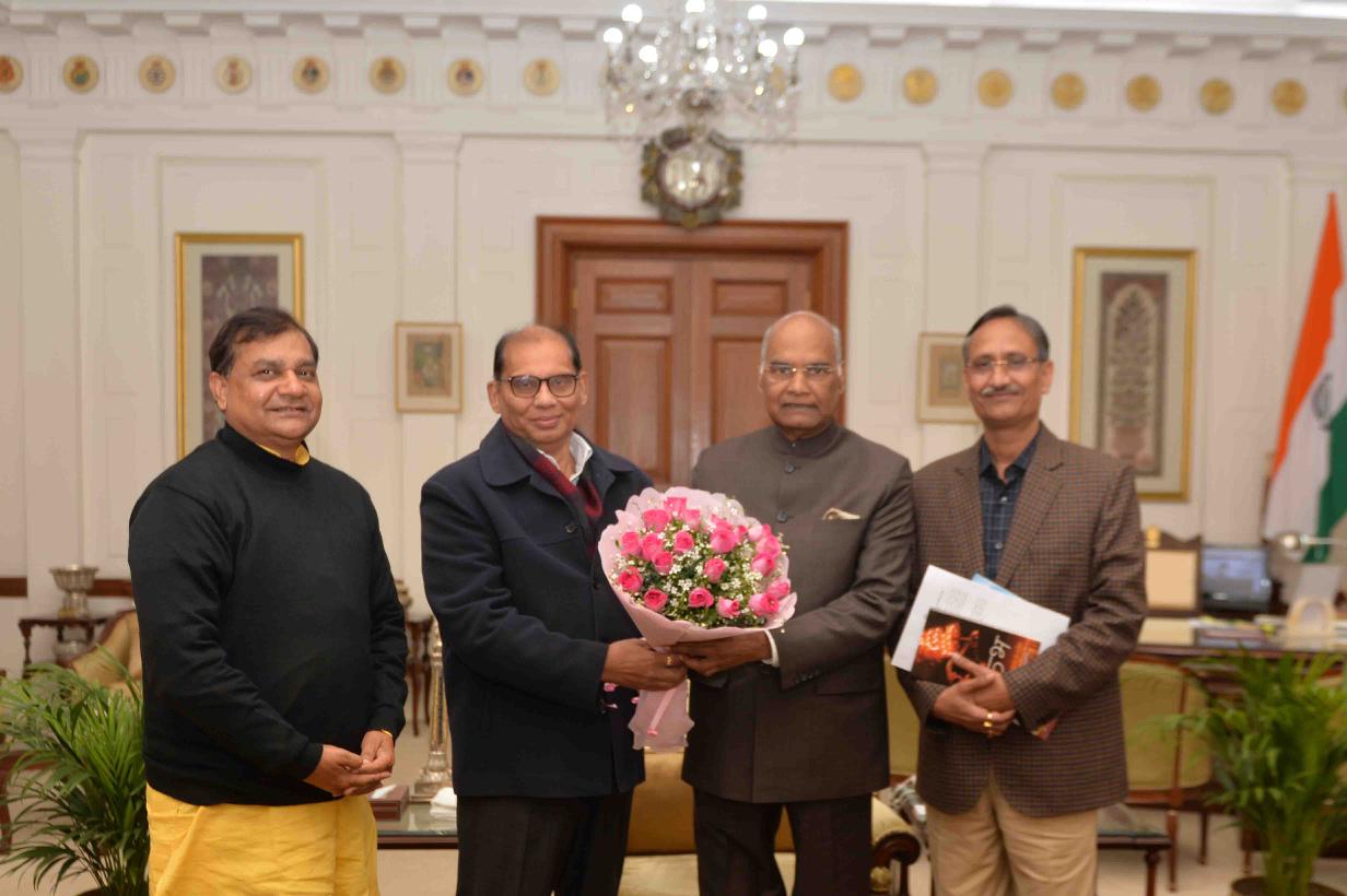 Shri Gopal Arya, Shri Chintan Upadhyay and others meeting with the President of India, Shri Ram Nath Kovind, at Rashtrapati Bhavan on February 03, 2018.