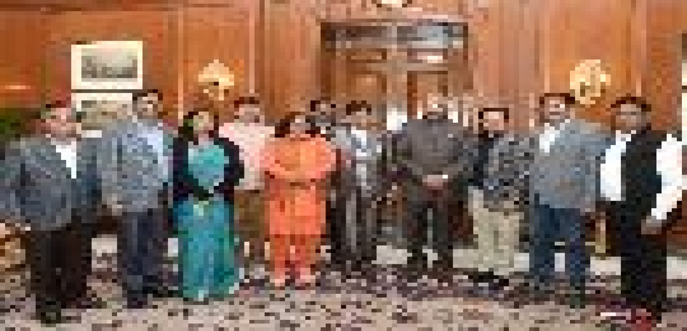 Students and teachers from Churachandpur attending National Integration Tour, organised by the 25 AR/57 Mtn Div/3 Corps of Eastern Command meeting with the President of India, Shri Ram Nath Kovind, at Rashtrapati Bhavan on February 10, 2018.