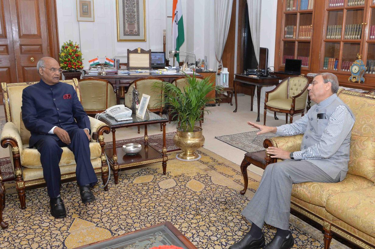 Shri N.K. Singh meeting with the President of India, Shri Ram Nath Kovind, at Rashtrapati Bhavan on February 09, 2018.