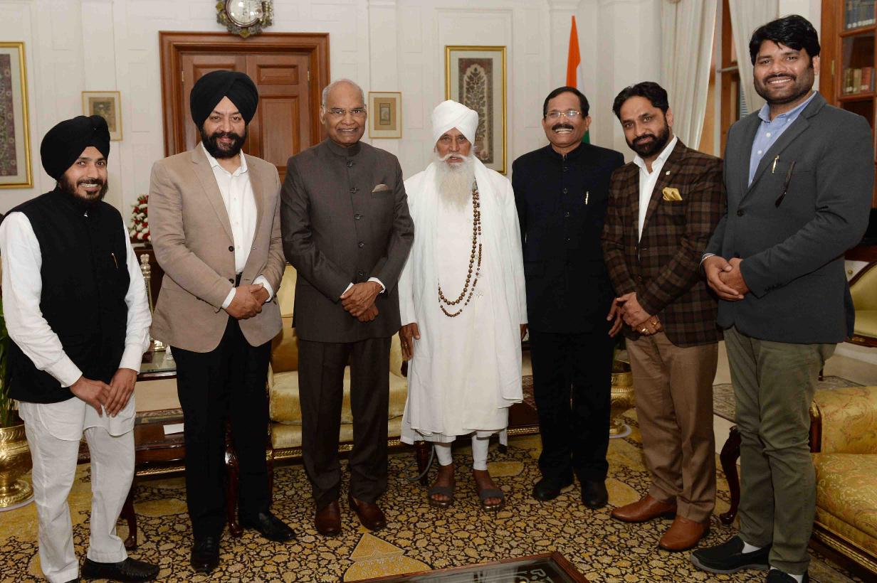 Sant Baba Resham Singh from Dera Sant Resham SIngh, Fazilka, Punjab with others meeting with the President of India, Shri Ram Nath Kovind, at Rashtrapati Bhavan on February 08, 2018.