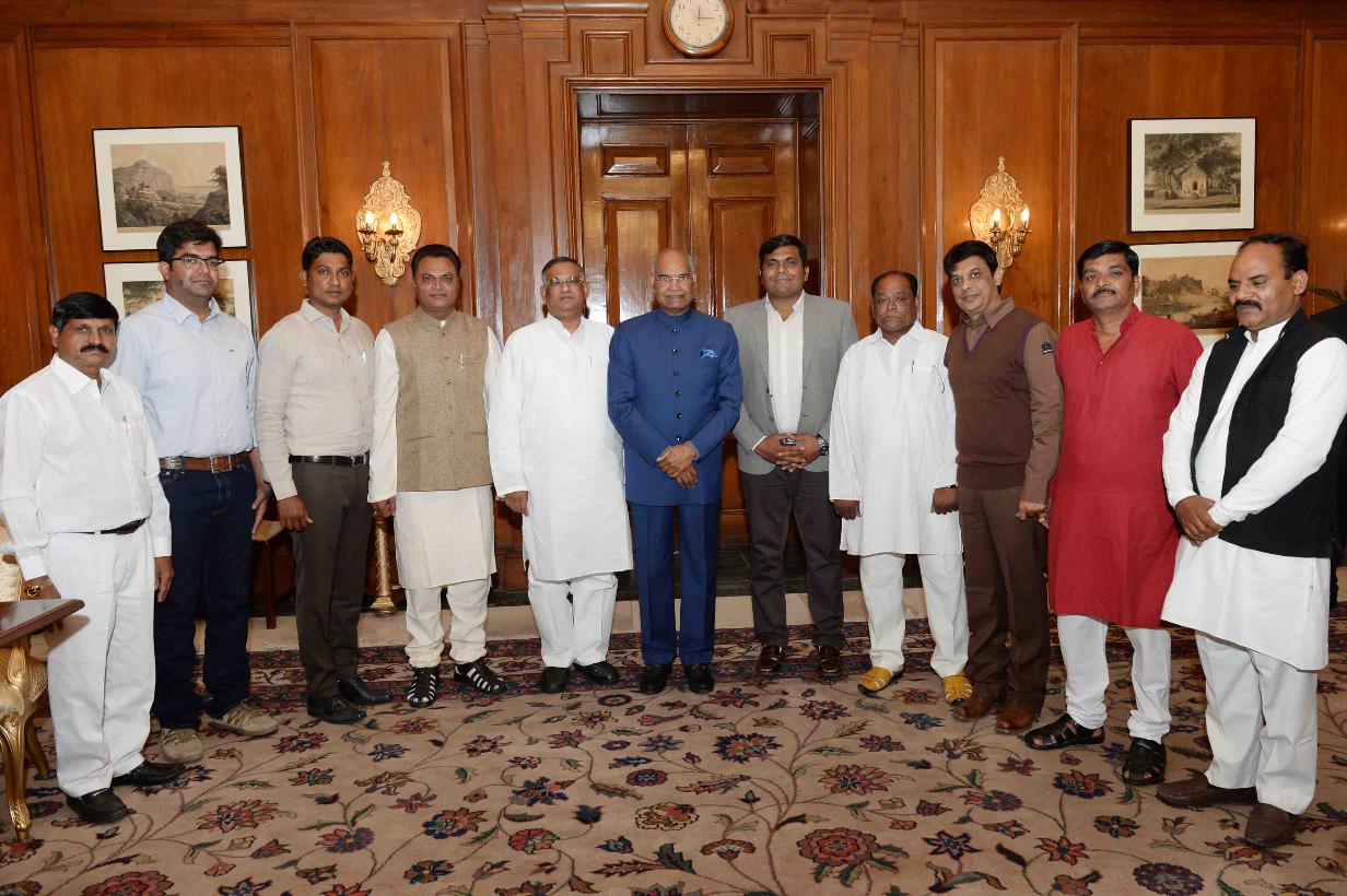 Shri Chandravadan Pithawalla, President of Gujarat State Akhil Bhartiya Koli Samaj, Rajkot with others meeting with the President of India, Shri Ram Nath Kovind, at Rashtrapati Bhavan on January 12, 2018.