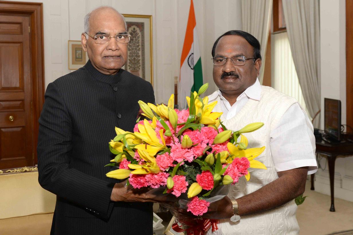 Shri R.P. Marutharajaa, MP (LS) from Perambalur (Tamil Nadu) meeting with the President of India, Shri Ram Nath Kovind, at Rashtrapati Bhavan on January 05, 2018.