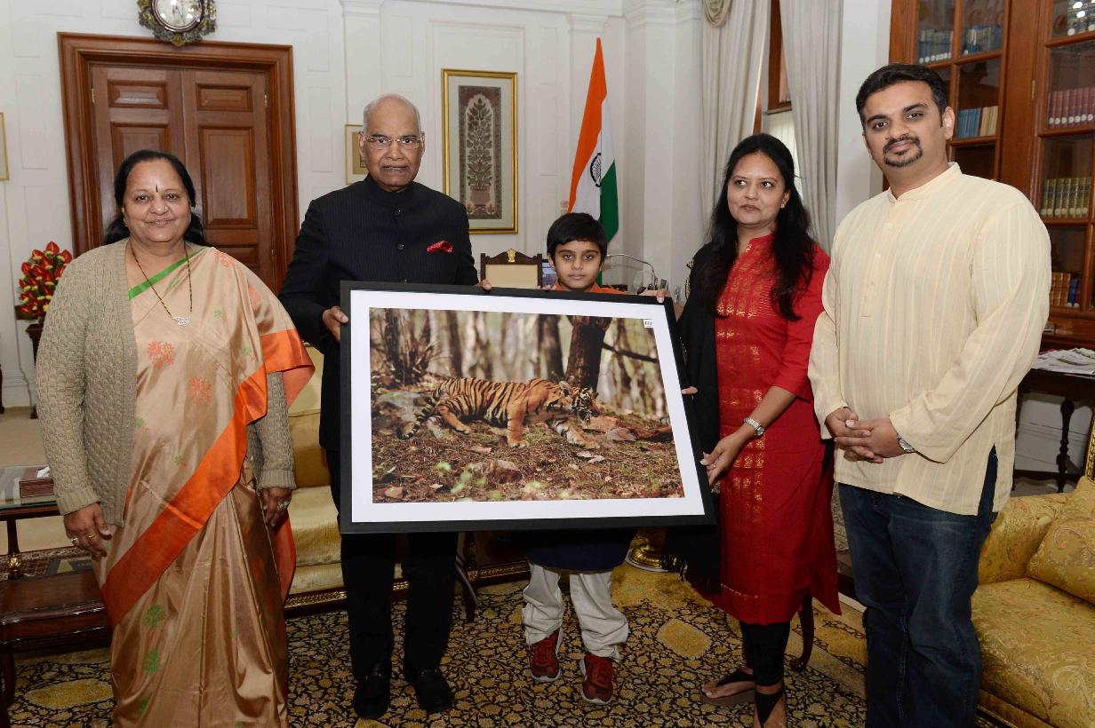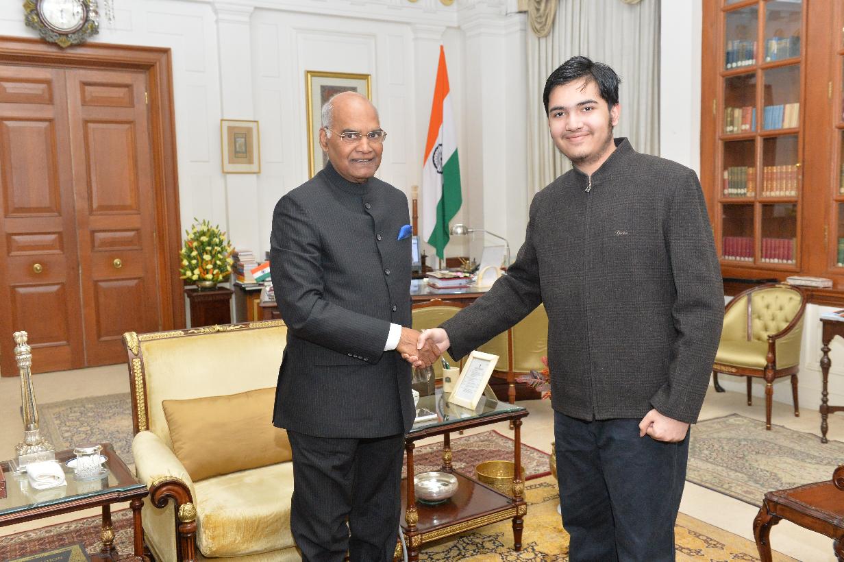Smt. Mamta Chopra alongwith her son Master Aryan Chopra, Chess Grand Master meeting with the President of India, Shri Ram Nath Kovind, at Rashtrapati Bhavan on December 22, 2017.