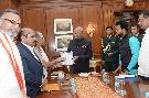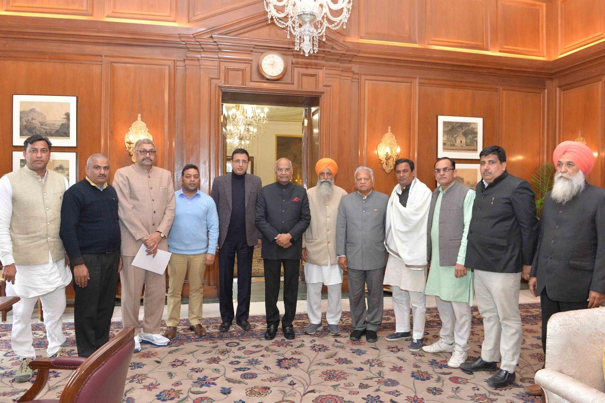 Shri Bahadur Singh Koli, MP (LS) from Bharatpur (Rajasthan) with others meeting with the President of India, Shri Ram Nath Kovind, at Rashtrapati Bhavan on January 03, 2018.