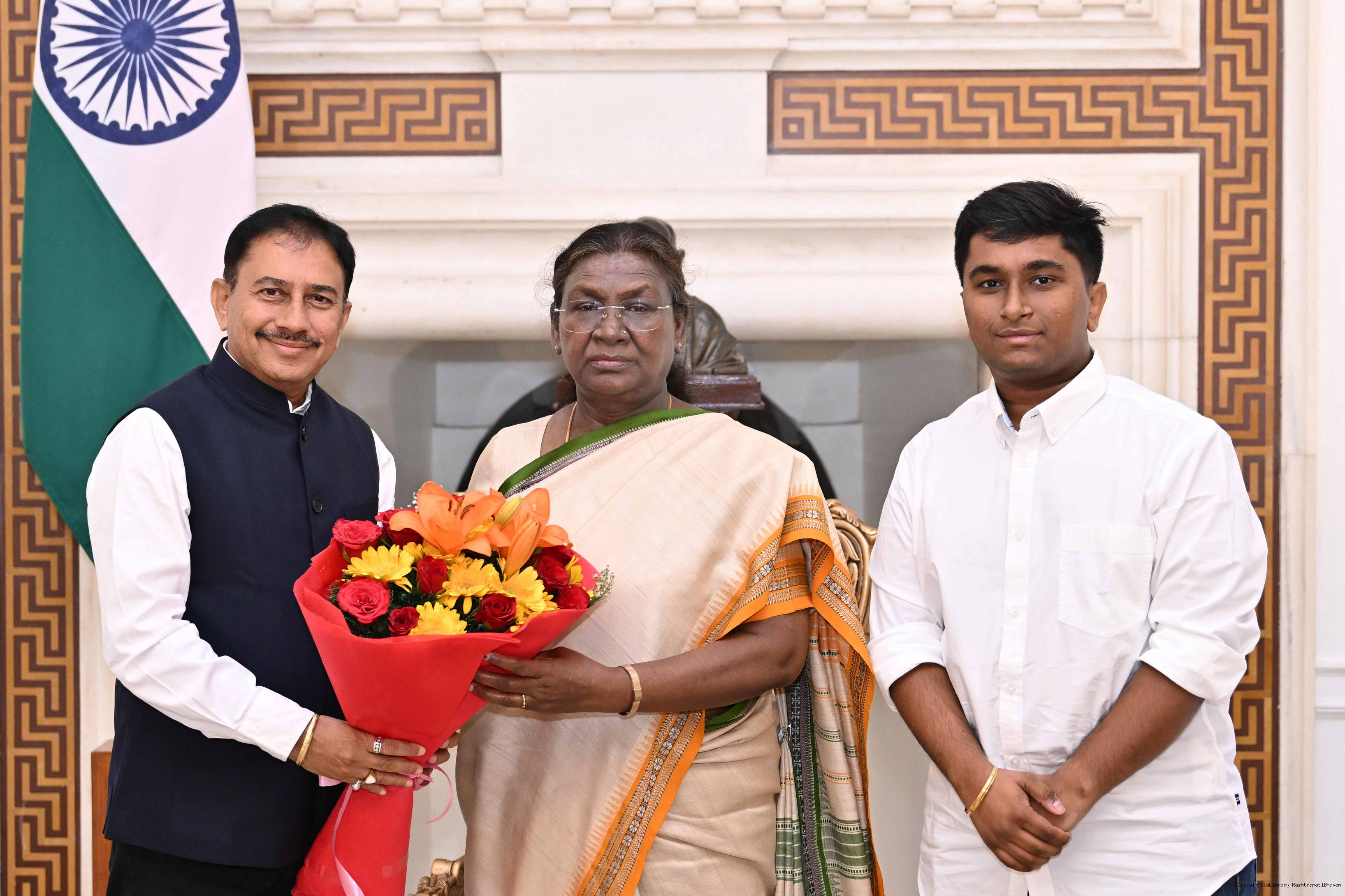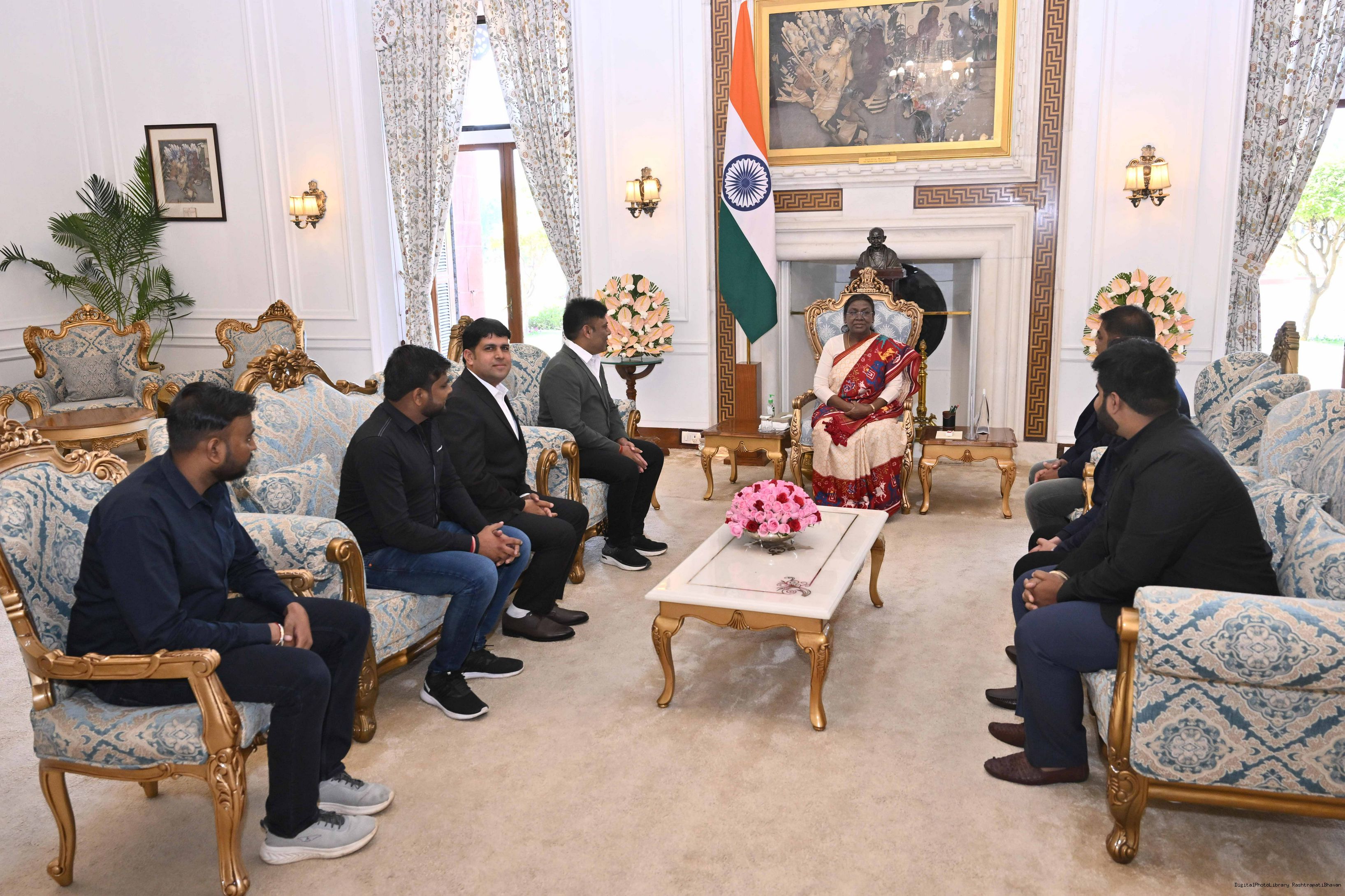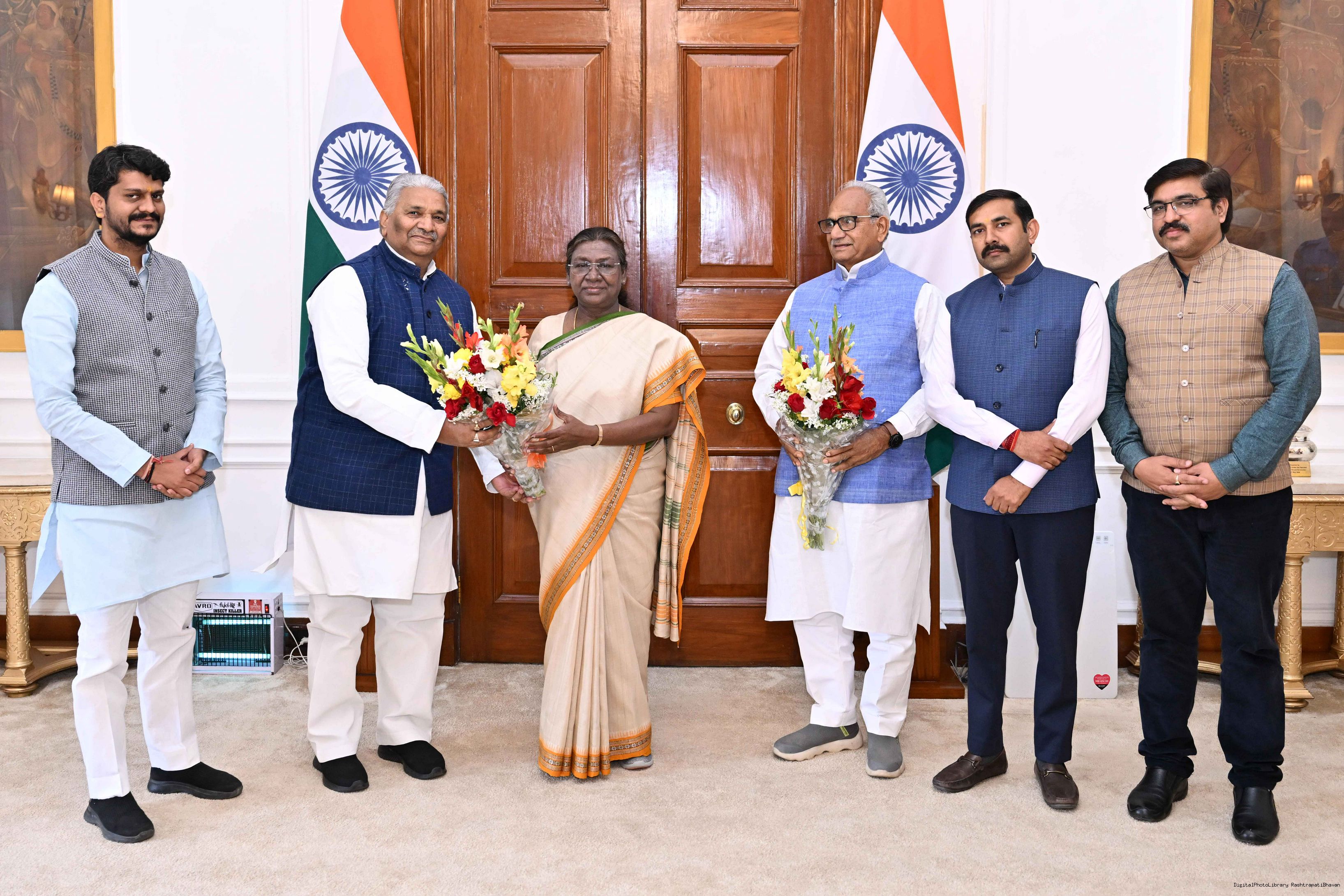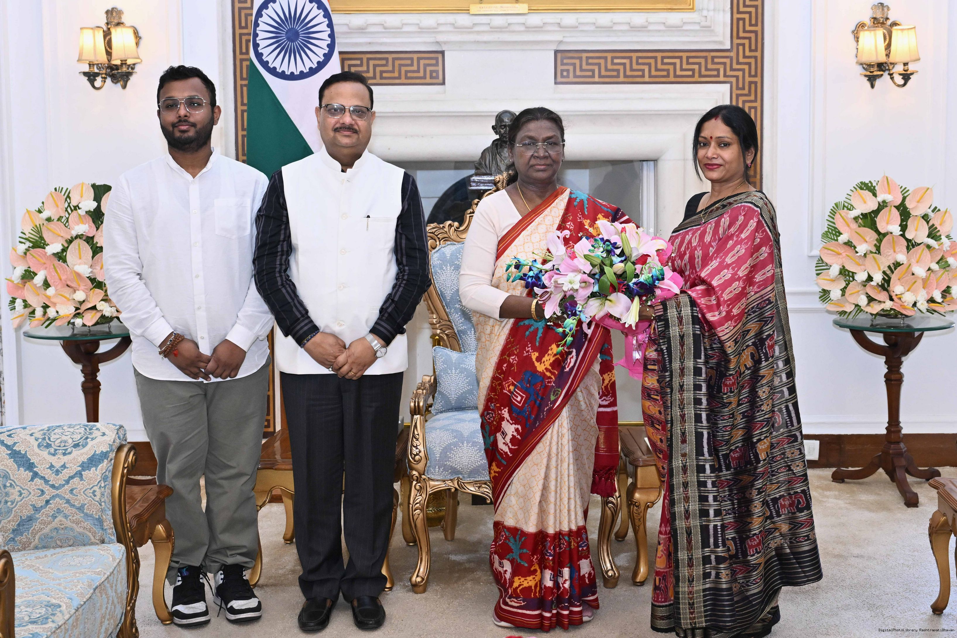 Shri Gourav Kumar Agrawal from Rairangpur along with others meeting with the President of India, Smt. Droupadi Murmu at Rashtrapati Bhavan on March 8, 2025.