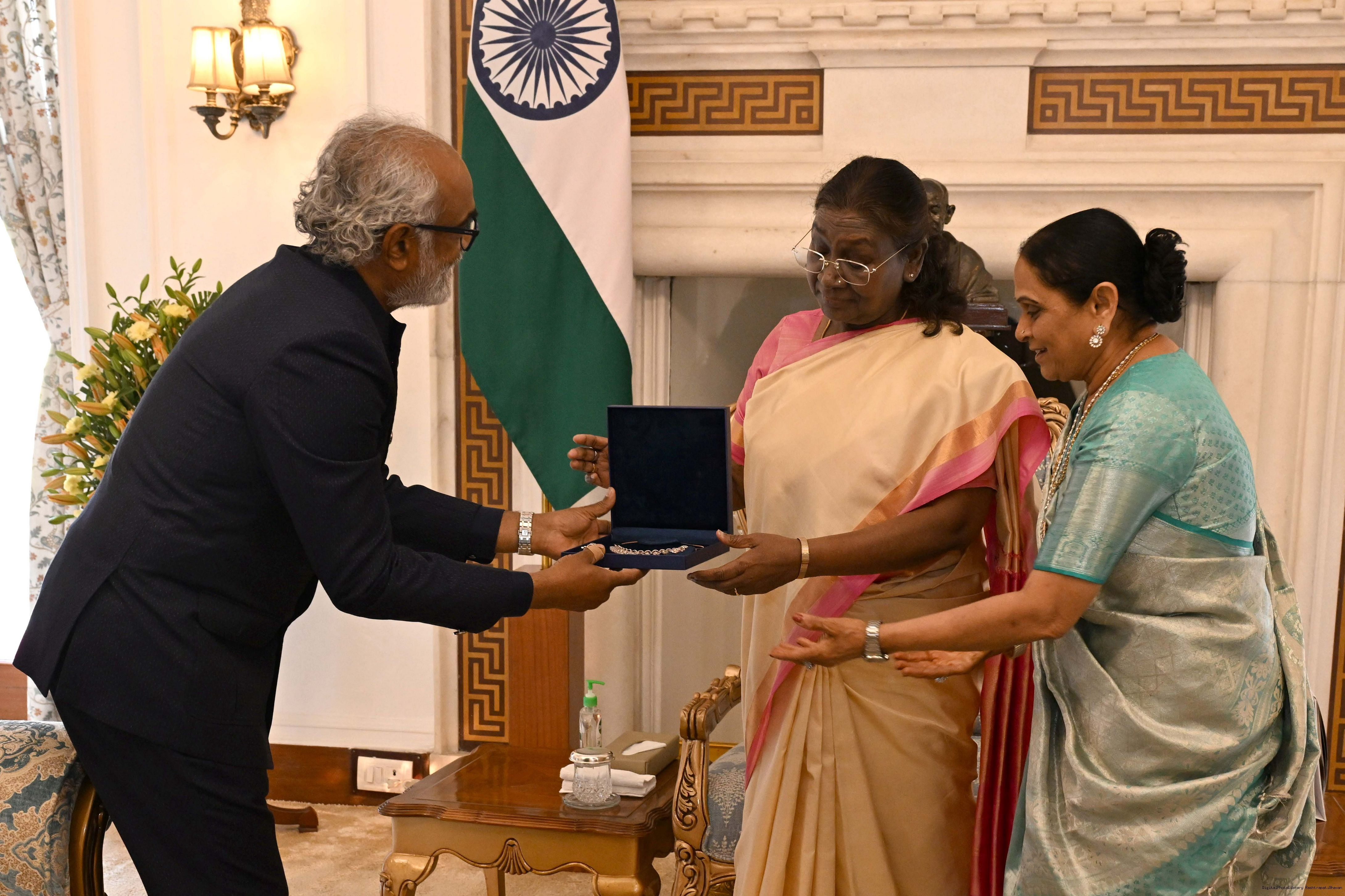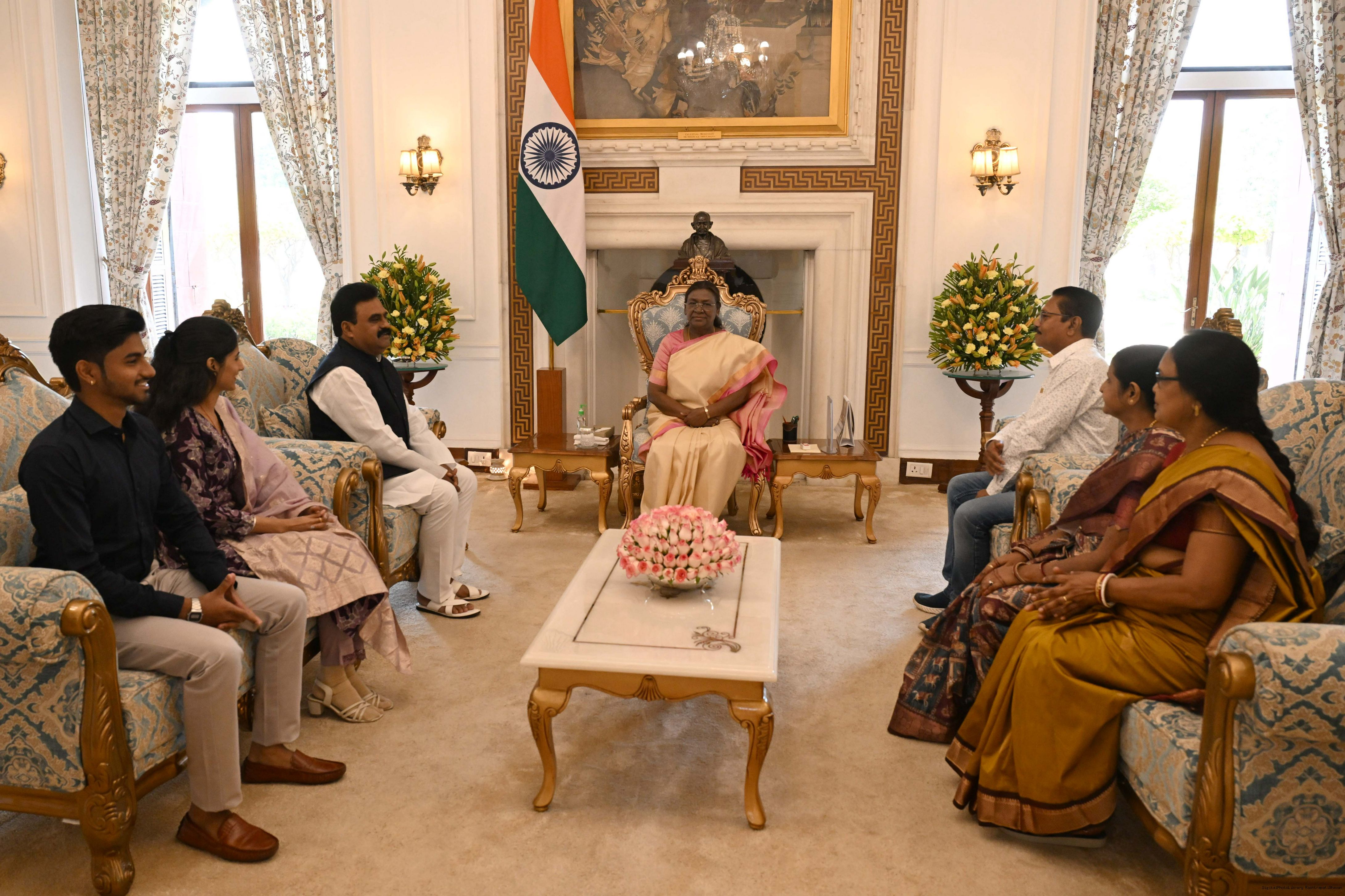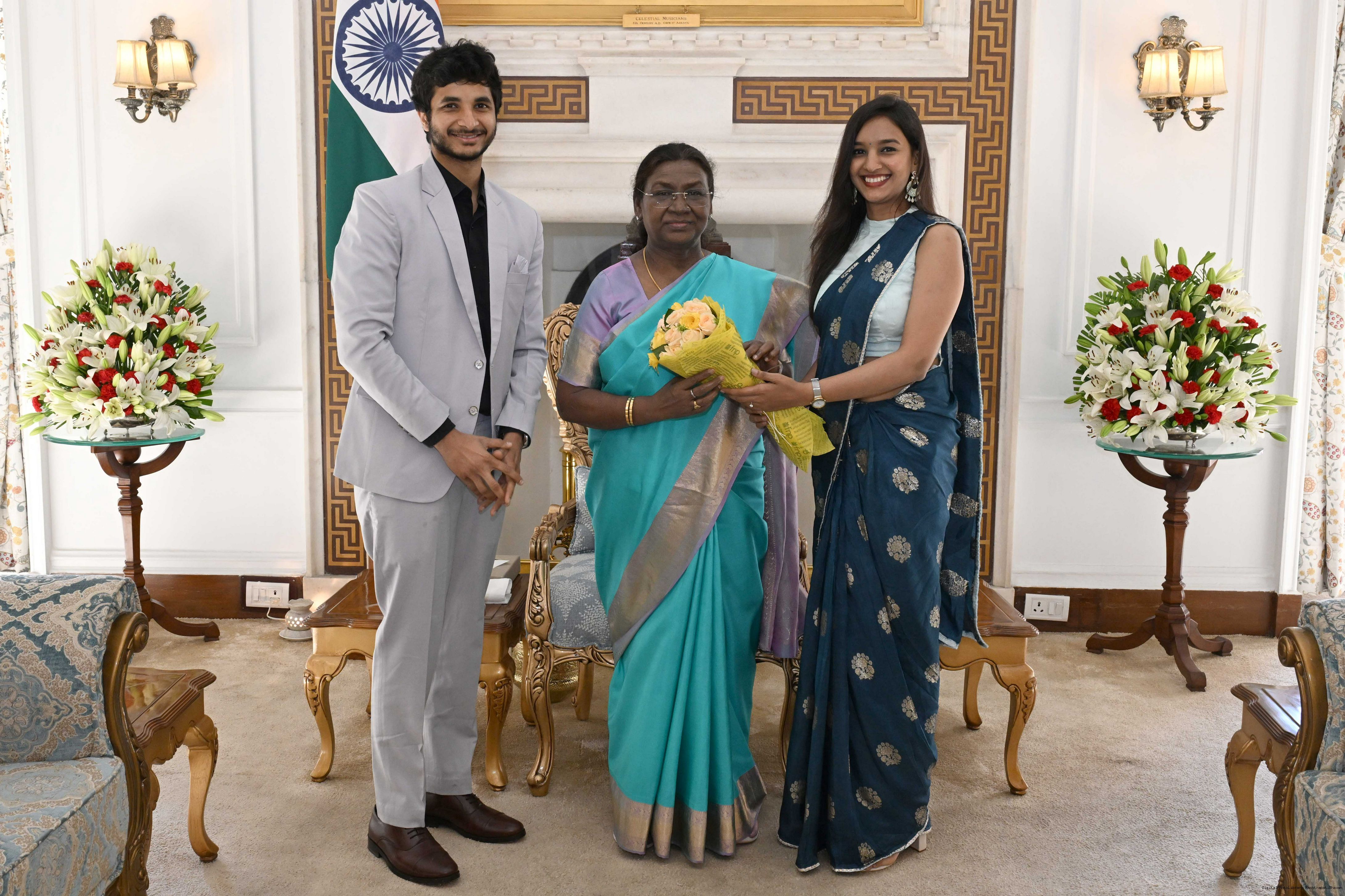 Shri Vidit Gujarathi along with Dr. Nidhi Kataria meeting with the President of India, Smt. Droupadi Murmu at Rashtrapati Bhavan on March 20, 2025.