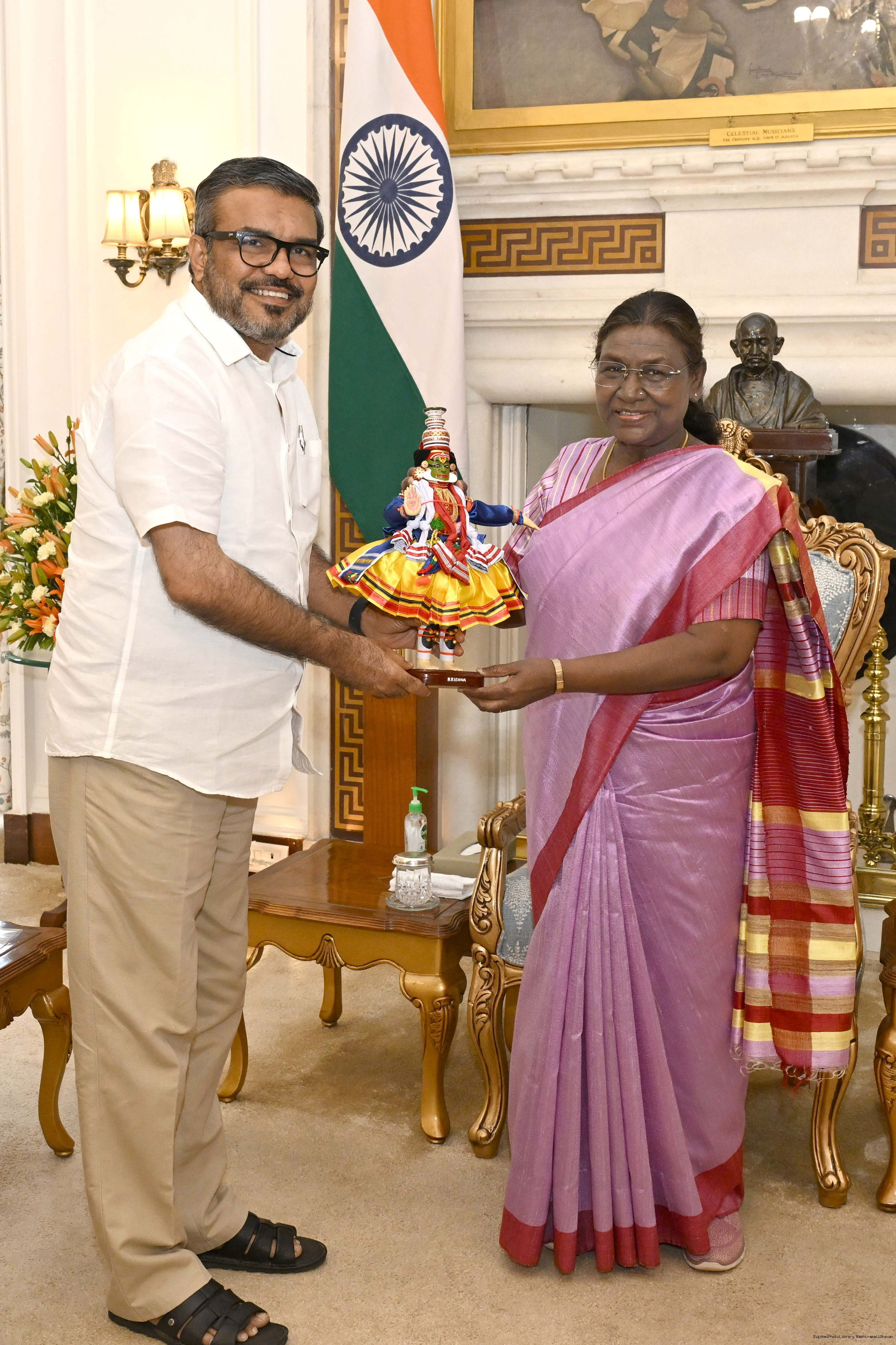 Shri Dipak Kumar Parshuram Bhatt, Artist along with other meeting with the President of India Smt. Droupadi Murmu at Rashtrapati Bhavan on March 4, 2025.
