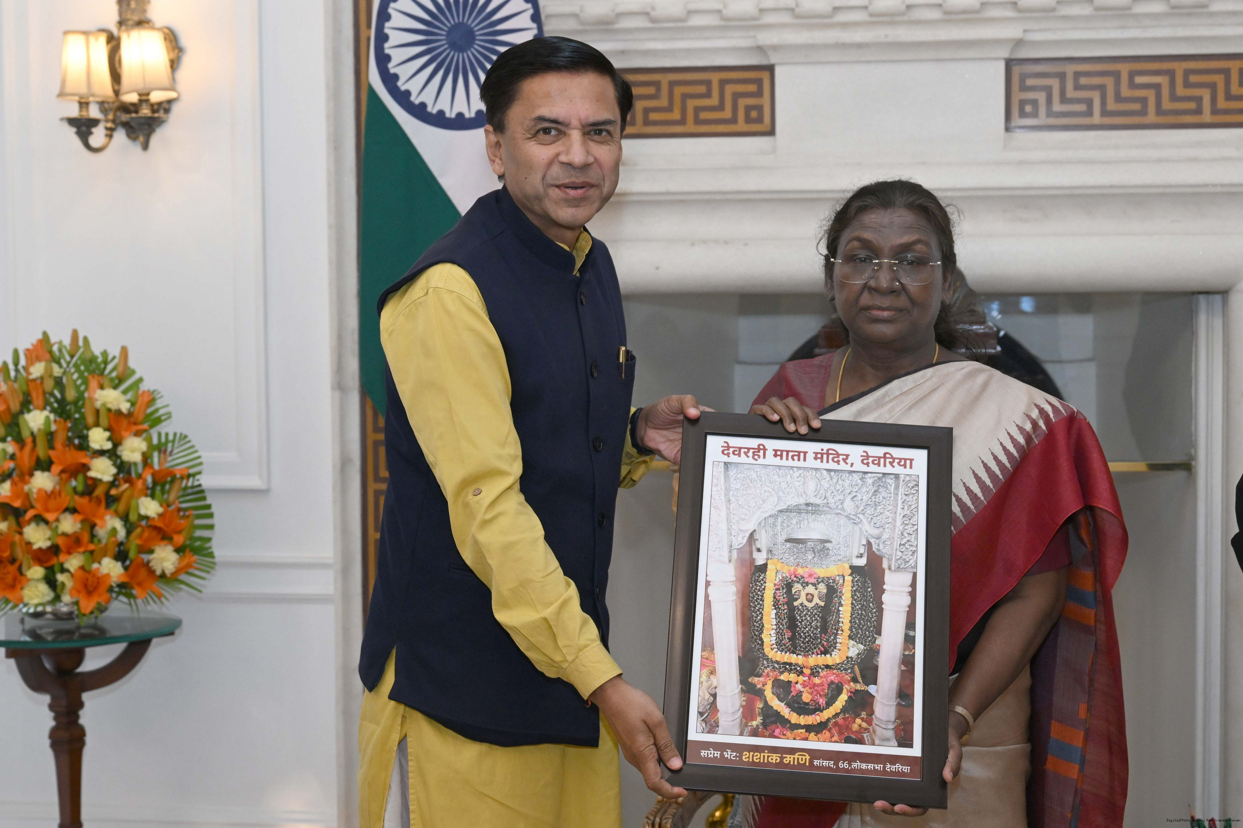 Shri Shashank Mani, MP (Lok Sabha) from Deoria, Uttar Pradesh along with other meeting with the President of India, Smt. Droupadi Murmu at Rashtrapati Bhavan on March 17, 2025.