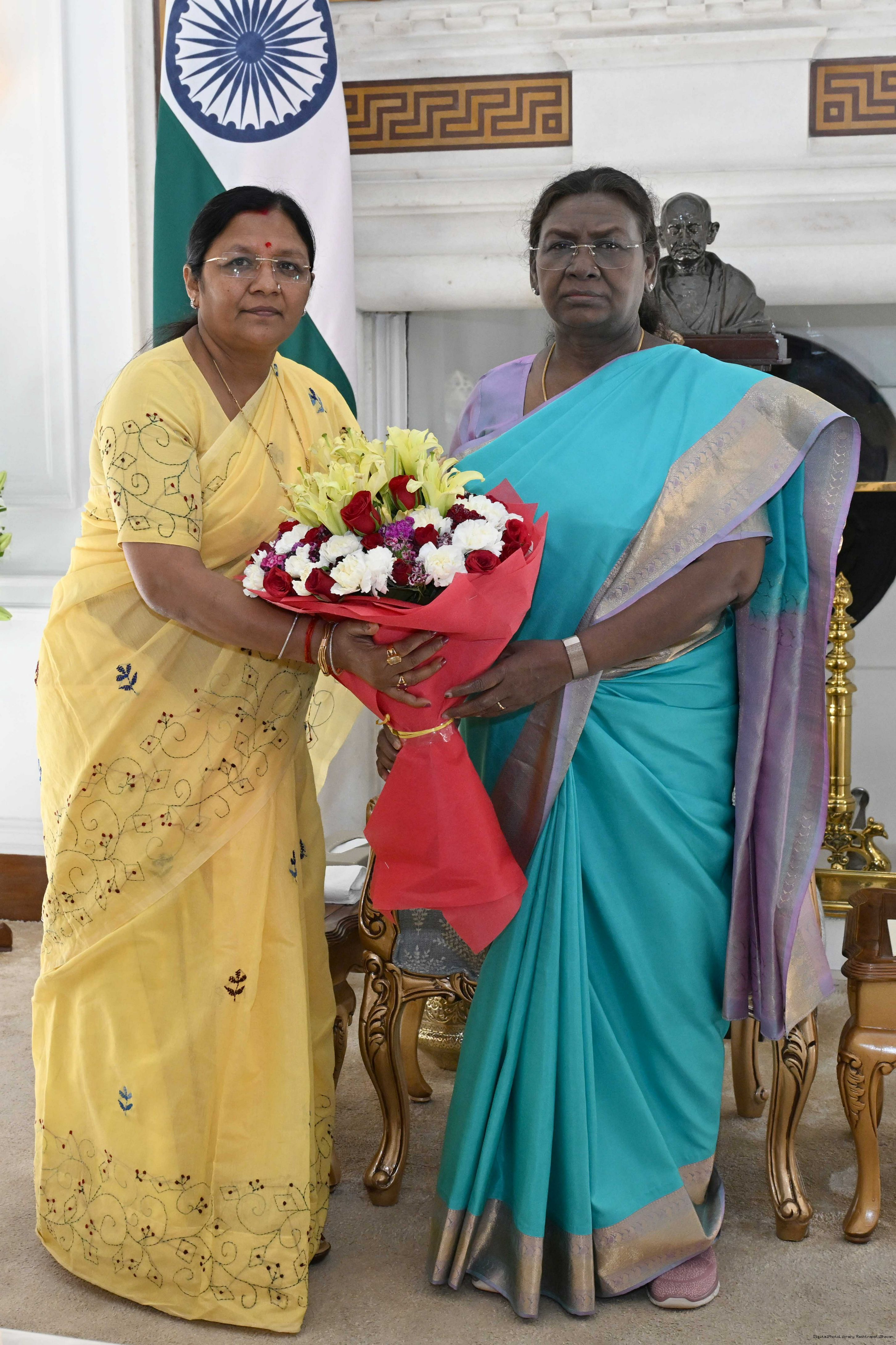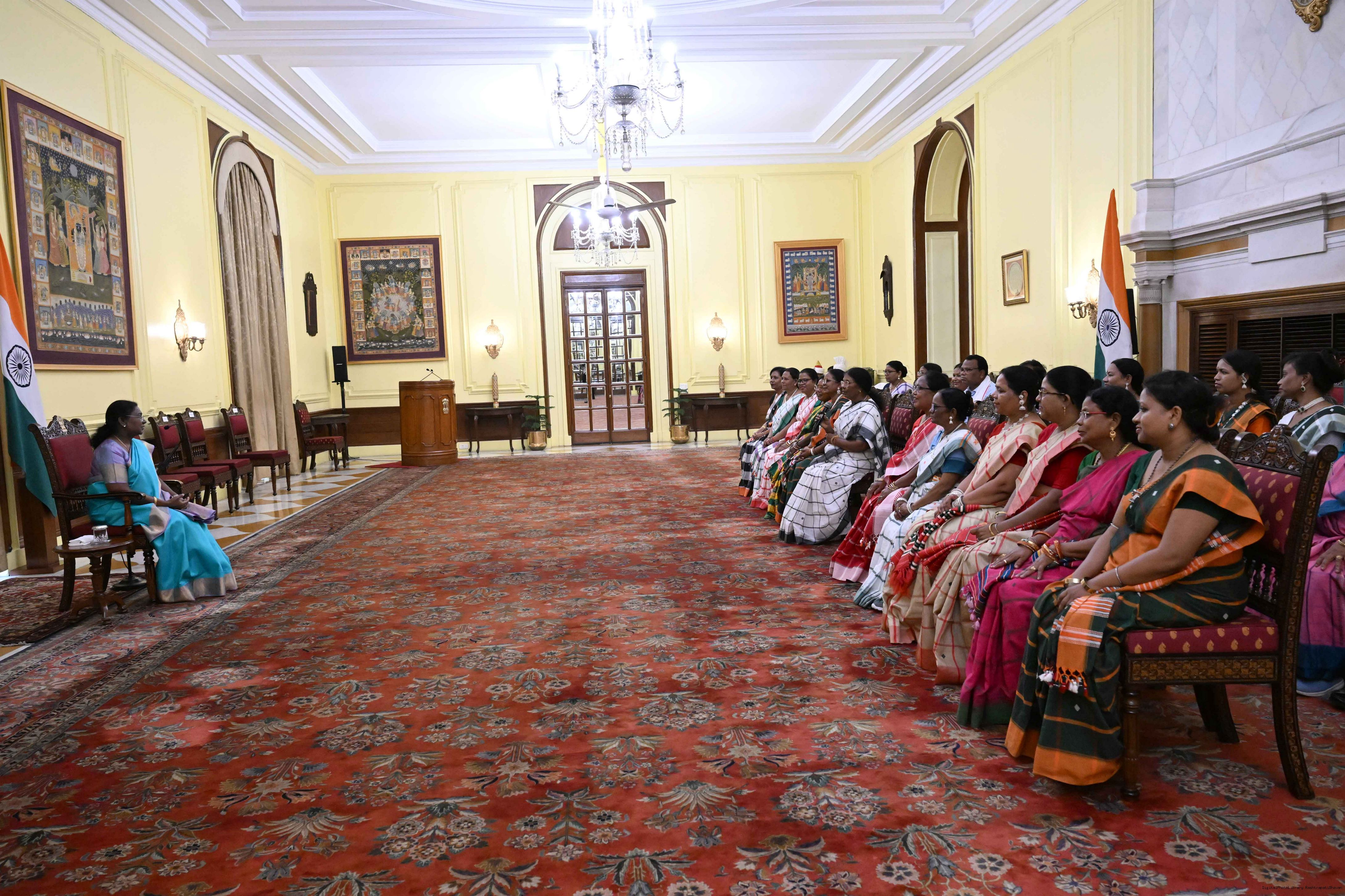 Smt. Dangi Murmu along with others meeting with the President of India, Smt. Droupadi Murmu at Rashtrapati Bhavan on March 20, 2025.