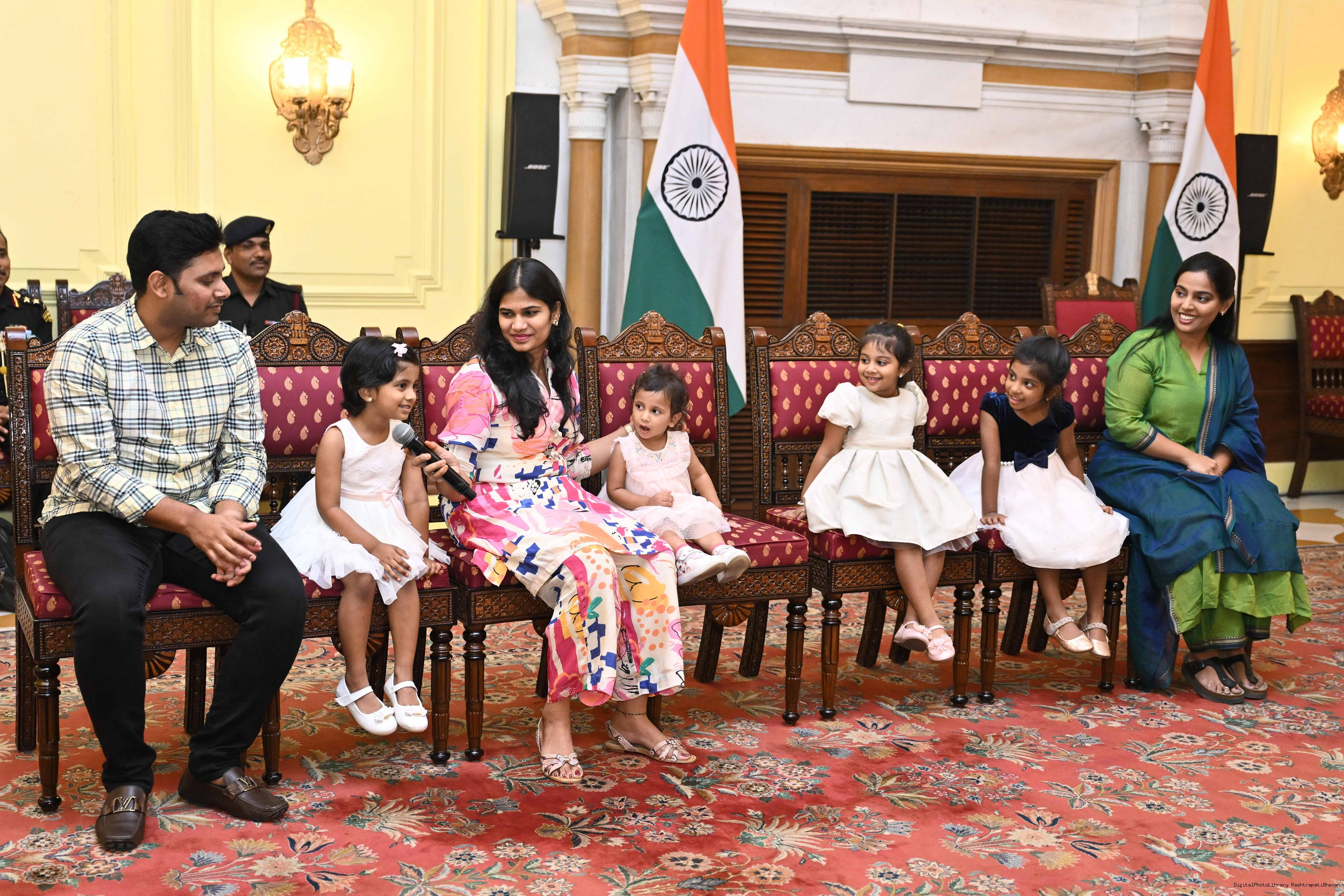 Smt. Bandaru Vijaya Laxmi along with 16 Family Members meeting with the President of India, Smt. Droupadi Murmu at Rashtrapati Bhavan on March 21, 2025.